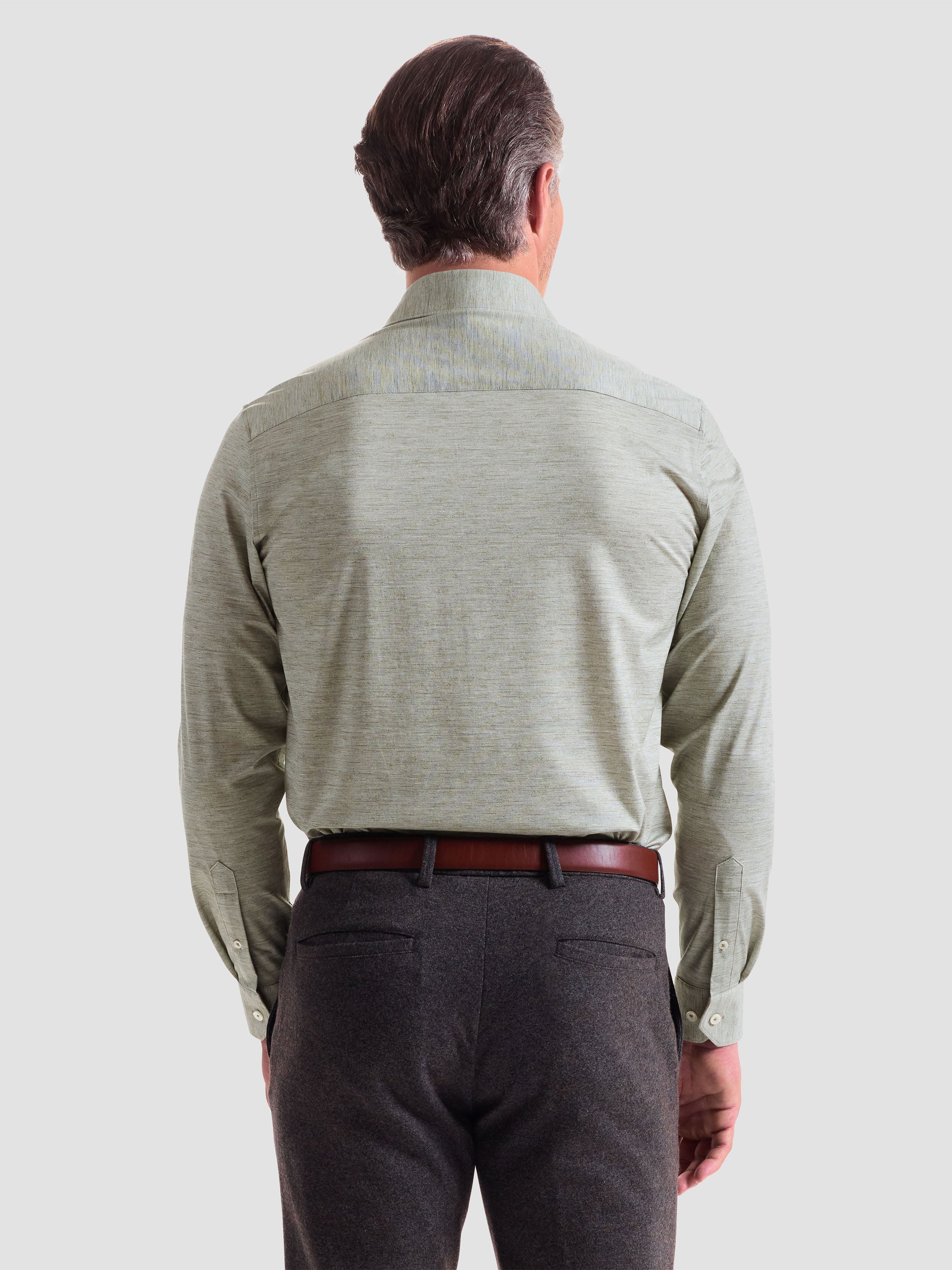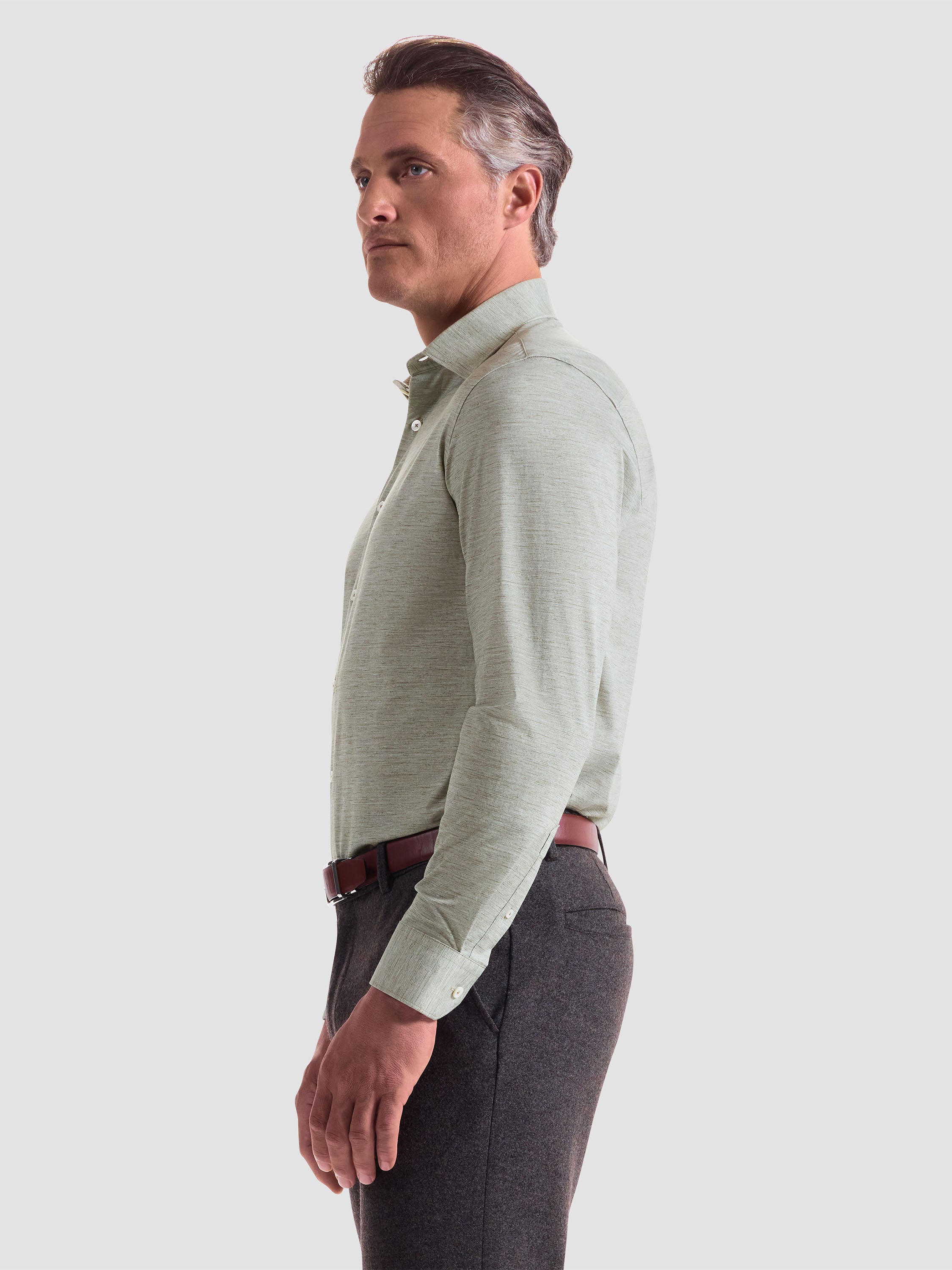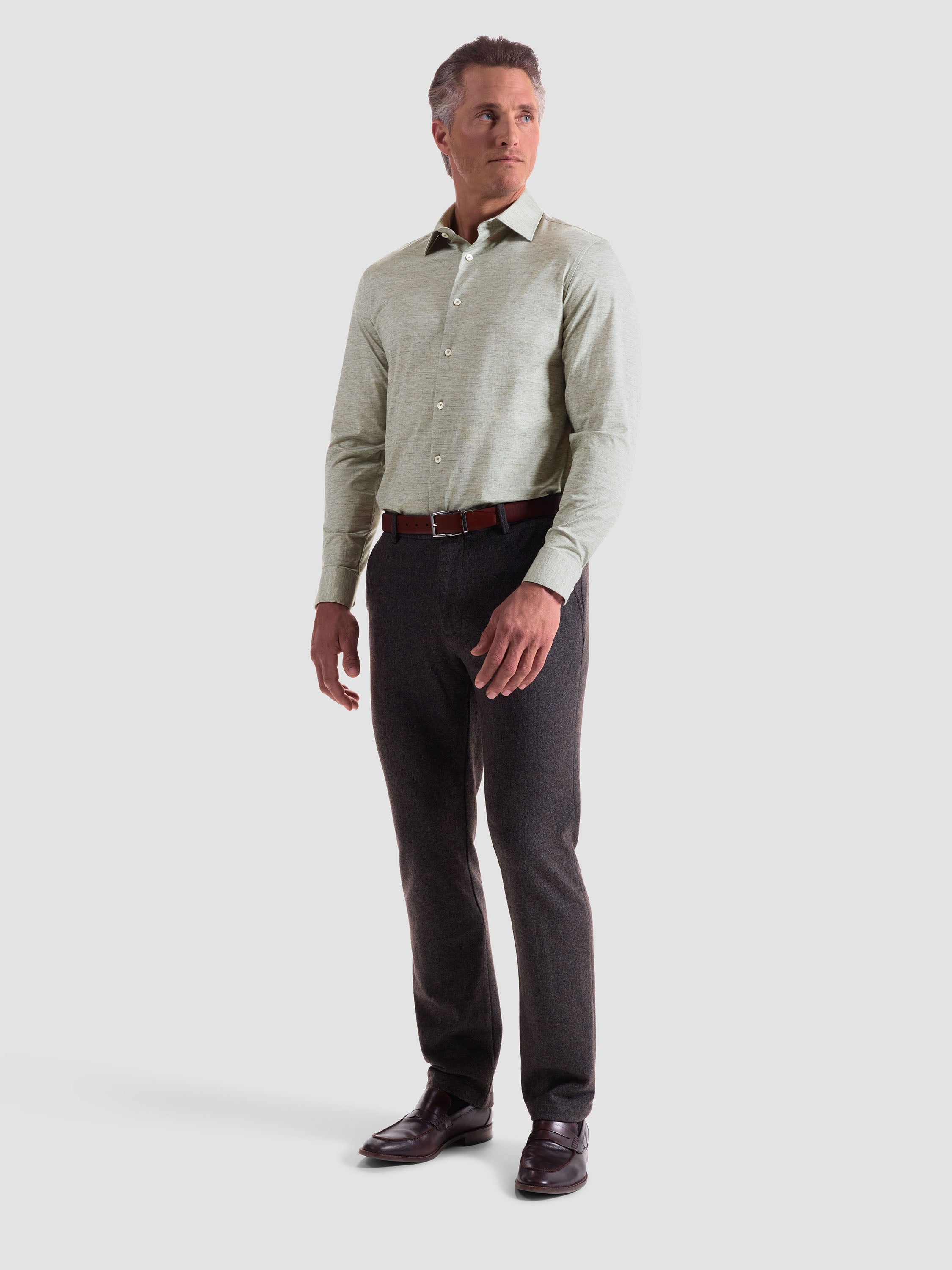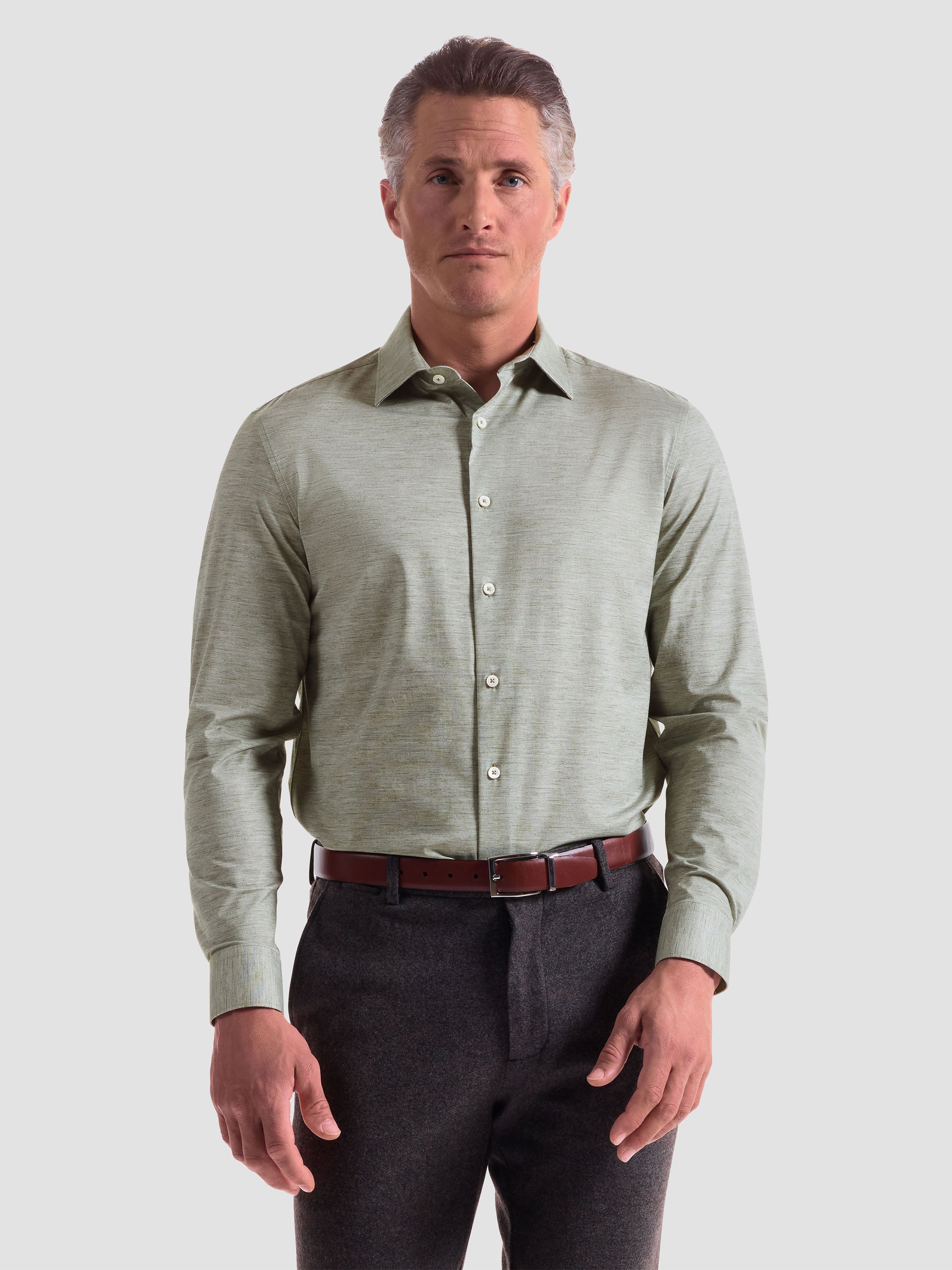 The James OoohCotton® long-sleeved shirt in heathered print features a point collar, mother-of-pearl buttons, and a curved hem for a sleek tucked or untucked look. The notched cuffs are adjustable to allow for customized fit and also convertible to accommodate cufflinks. OoohCotton® is a performance, double-mercerized, wrinkle-resistant, breathable, and easy-care cotton blend with 8-way stretch, quick-dry, and thermal comfort properties.