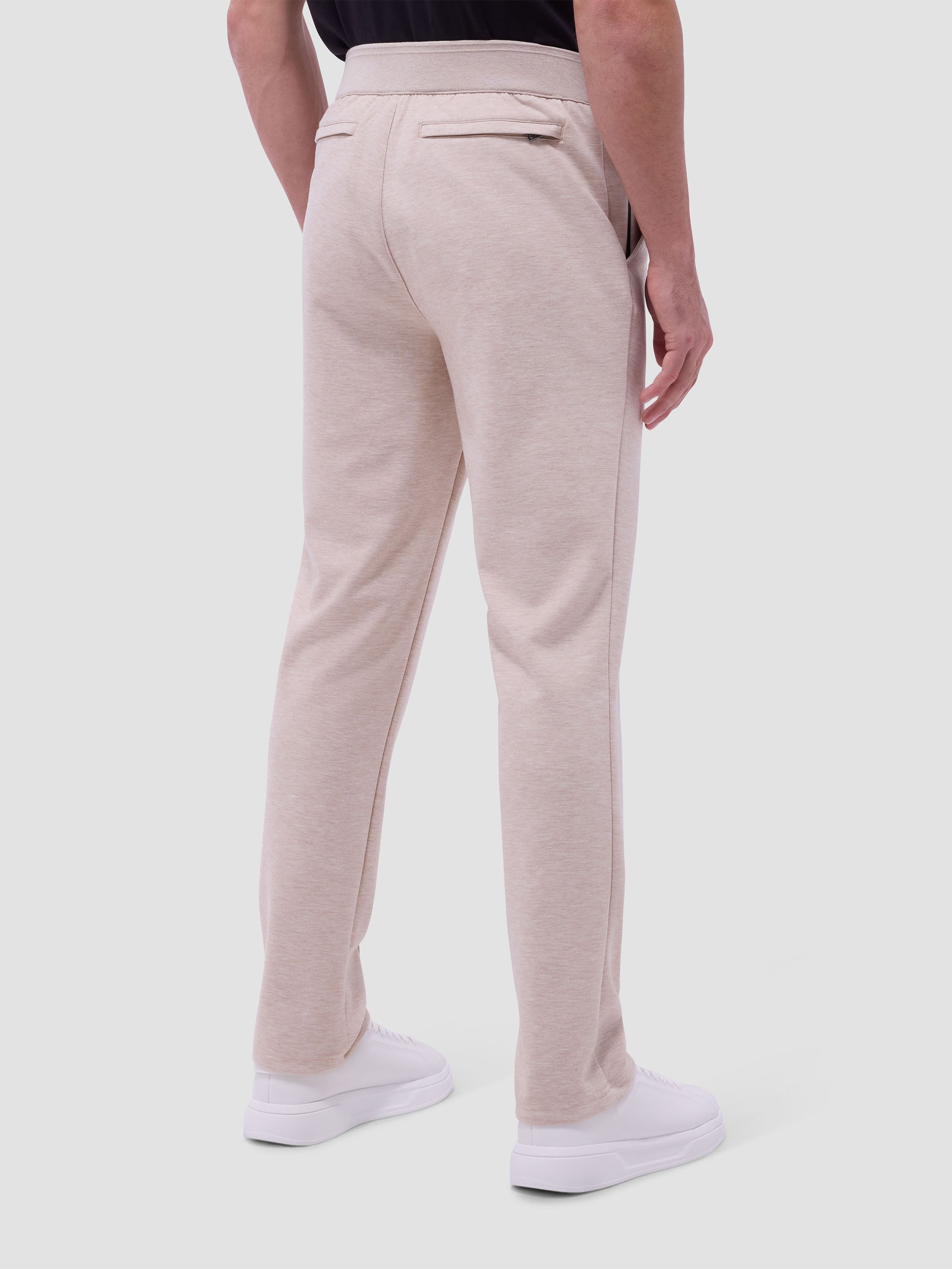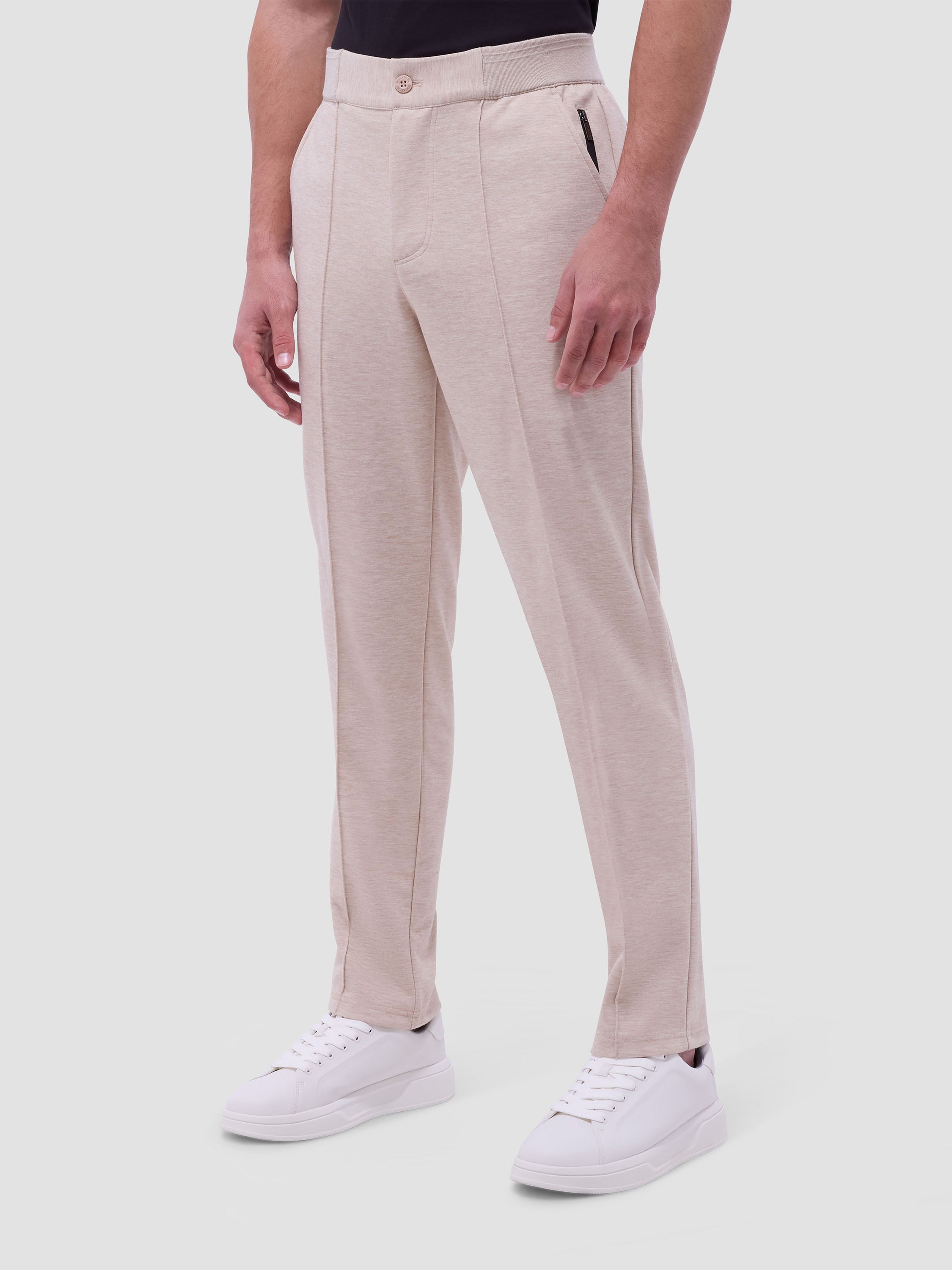 Crafted from Soft Touch performance knit fabric with a heather pattern, these pants feature a ribbed waist, zipper and button fly, slanted front pockets with vertical zippered inserts and rear welt pockets with hidden zippers for secure storage. Pintuck detailing adds a sleek, tailored look. Perfect for golf, casual outings and weekend wear, these pants effortlessly blend style and functionality.
