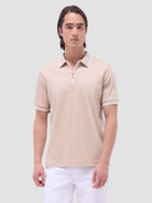 Bugatchi Solid Quarter-Zip Polo - Sand