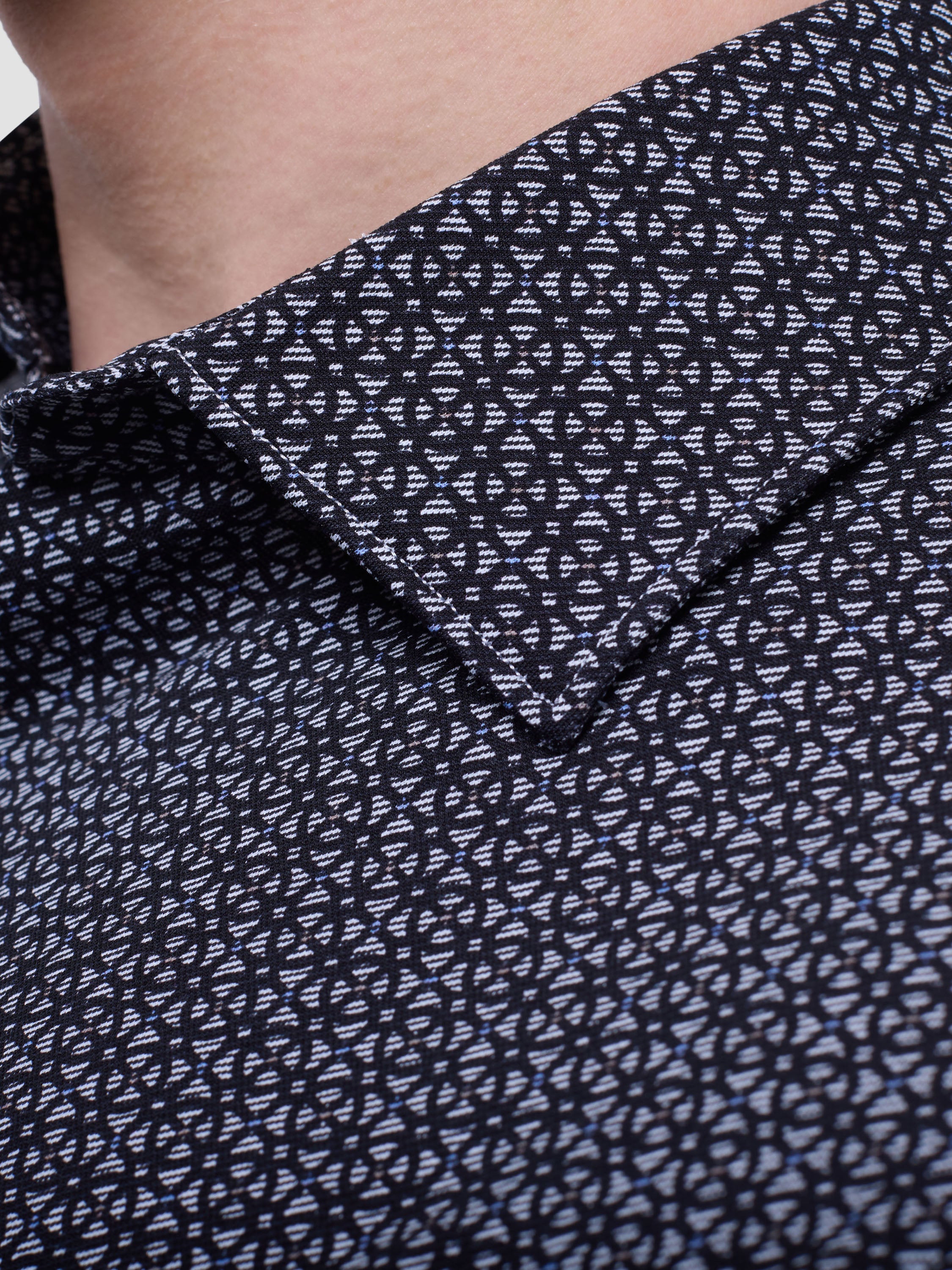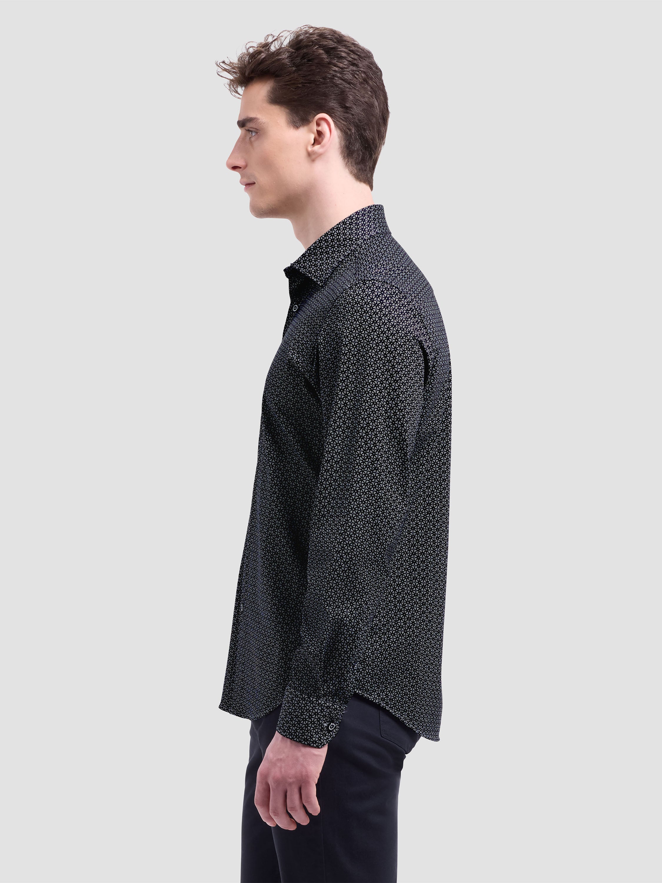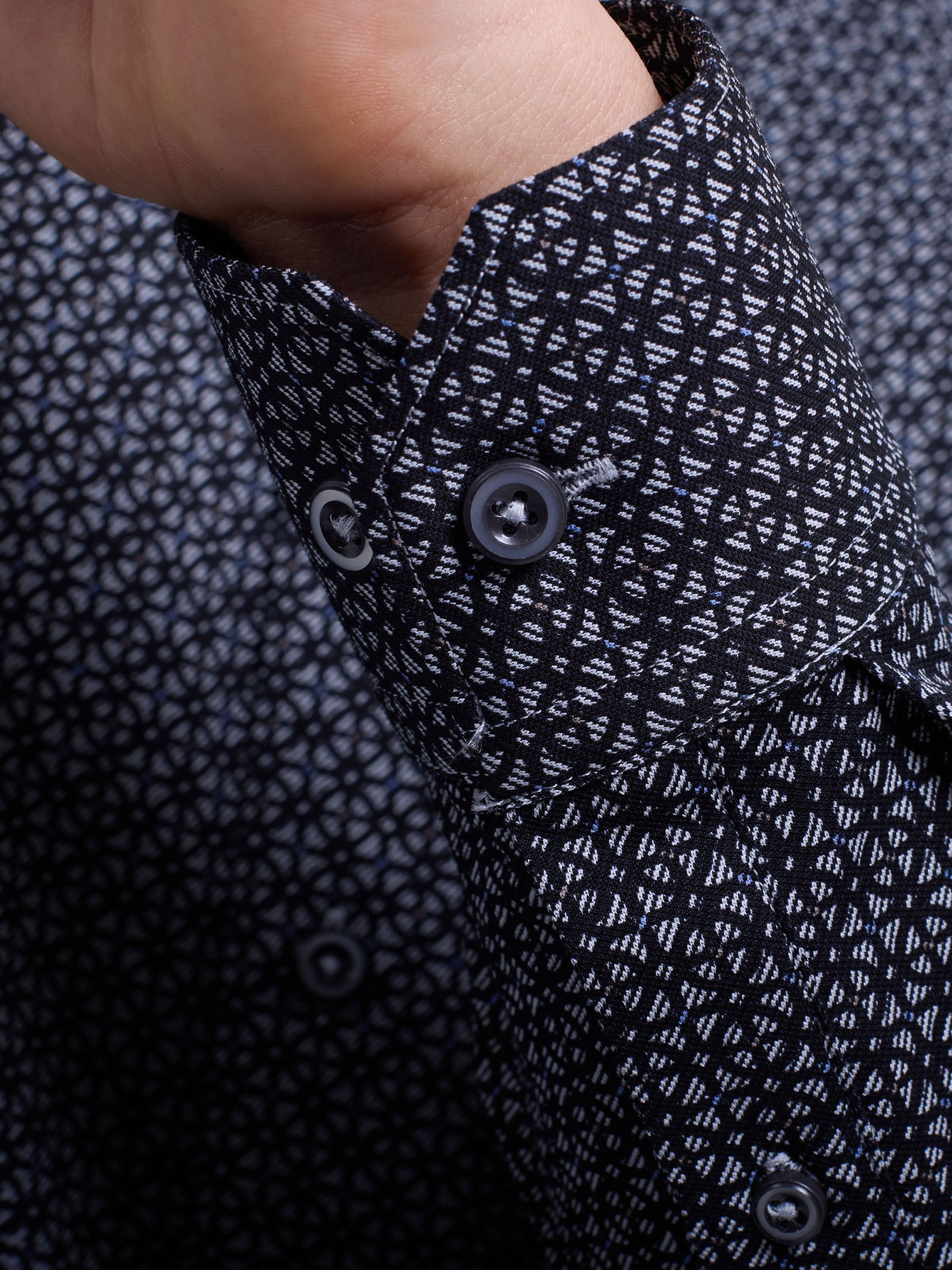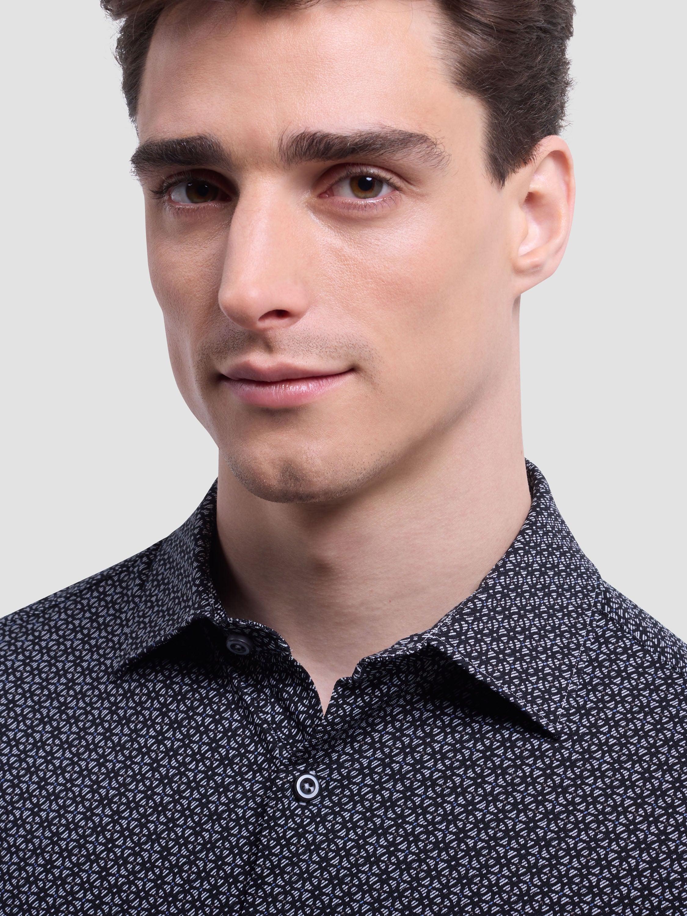 The James OoohCotton® long-sleeved shirt in paisley print features a point collar, mother-of-pearl buttons, and a curved hem for a sleek tucked or untucked look. The notched cuffs are adjustable to allow for customized fit and also convertible to accommodate cufflinks. OoohCotton® is a performance, double-mercerized, wrinkle-resistant, breathable, and easy-care cotton blend with 8-way stretch, quick-dry, and thermal comfort properties.