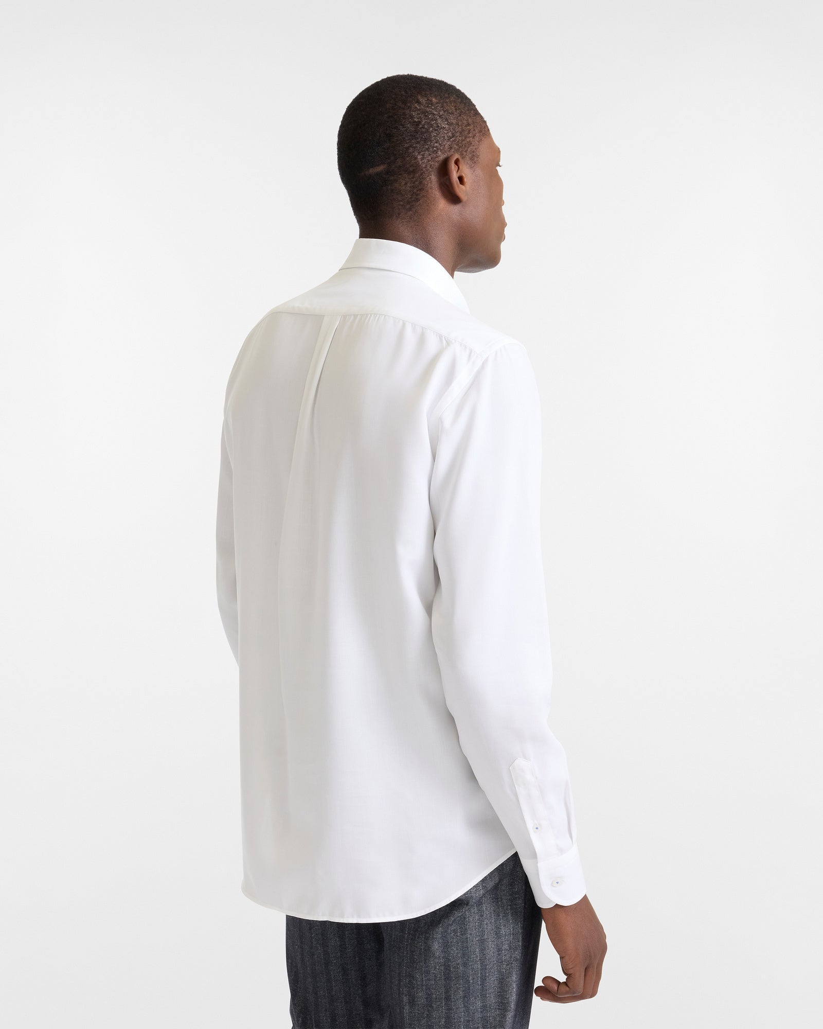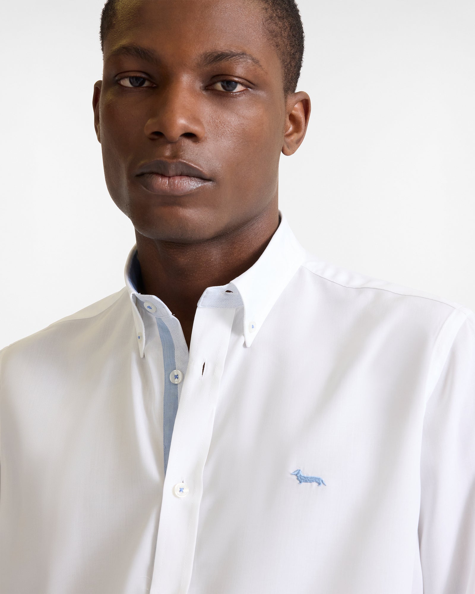 Perfect for completing your daily looks in true Harmont & Blaine style, this men's shirt features a button-down collar and contrasting fabric inside the cuffs, collar, and front closure, while the iconic dachshund stands out as an embroidered detail on the chest. The garment is made of pure lyocell, an eco-friendly and durable fiber that demonstrates the commitment to more sustainable fashion, and is offered in a regular fit, a comfortable and versatile cut that does not restrict movement.