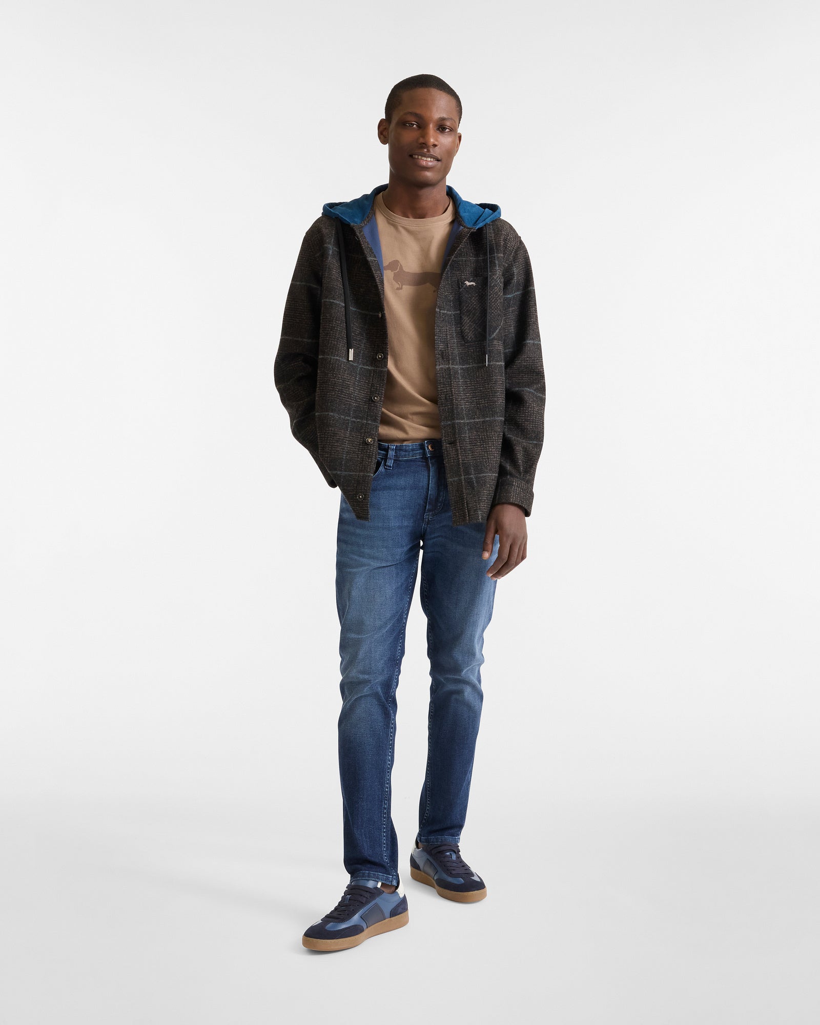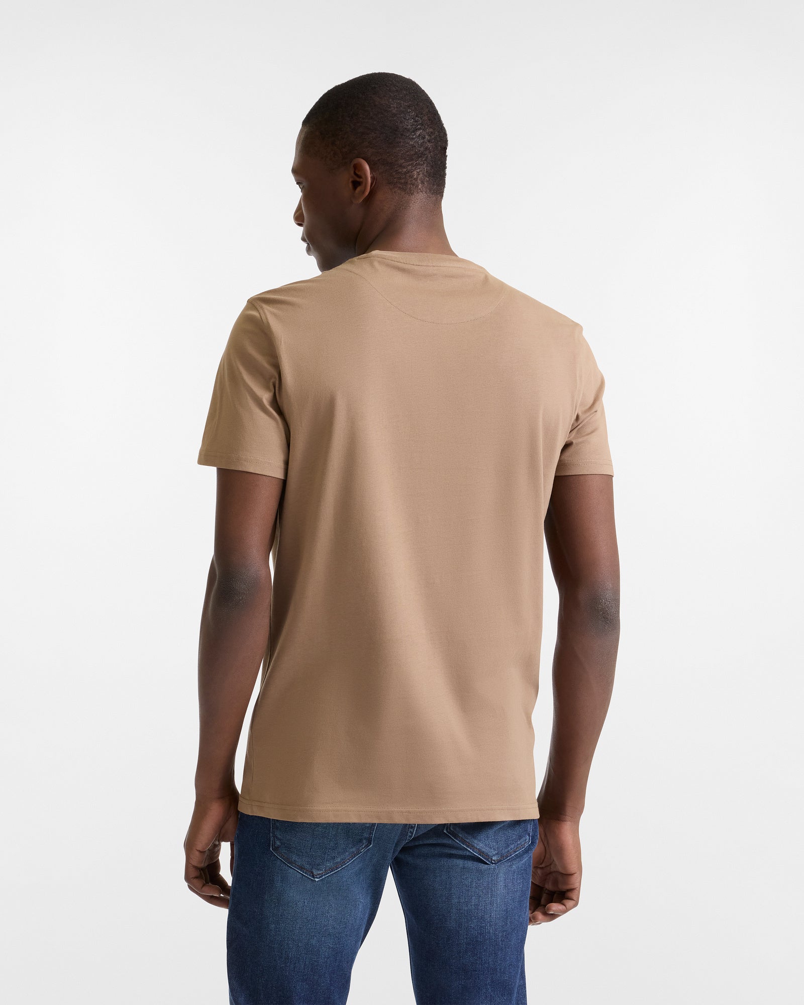 This men's short-sleeve crew neck T-shirt made from pure cotton jersey is the perfect piece to complete your everyday outfits thanks to its versatile neutral solid color and comfortable regular fit that allows for free movement. The true star of the model is the iconic Harmont&Blaine dachshund, featured on the chest as a maxi tone-on-tone print with a 3D stripe effect.