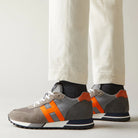 This Hogan H383 declines the stylistic features of the 70s athletics in an urban dimension, versatile and timeless. Lightweight and high-performing, thanks to the characteristic cleated outsole, they come with the distinctive side H in grosgrain. These sneakers in suede, nubuck and technical fabric enhance your everyday outfit with a bold and dynamic twist.