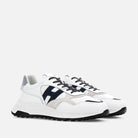 Characterized by smooth and dynamic forms, the Hogan Hyperlight sneakers combine the jogging shoe lines and urban features. The nubuck and smooth leather upper, with punched inserts and side H, recalls iconic details of the brand. An ultra dynamic style, with a memory foam insole and a lightweight outsole with spikes inspired by the historic H383 style.