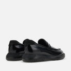 A perfect blend of metropolitan elegance and sporty appeal, these loafers meet the needs of a formal model with a sneaker's performance. The classic semi-shiny leather upper, with padded tongue, combines with the Interactive³ back part. The superlight EVA outsole, both urban and sporty, expresses the dual nature of this new contemporary hybrid. The memory foam insole guarantees a soft and comfortable fit.