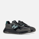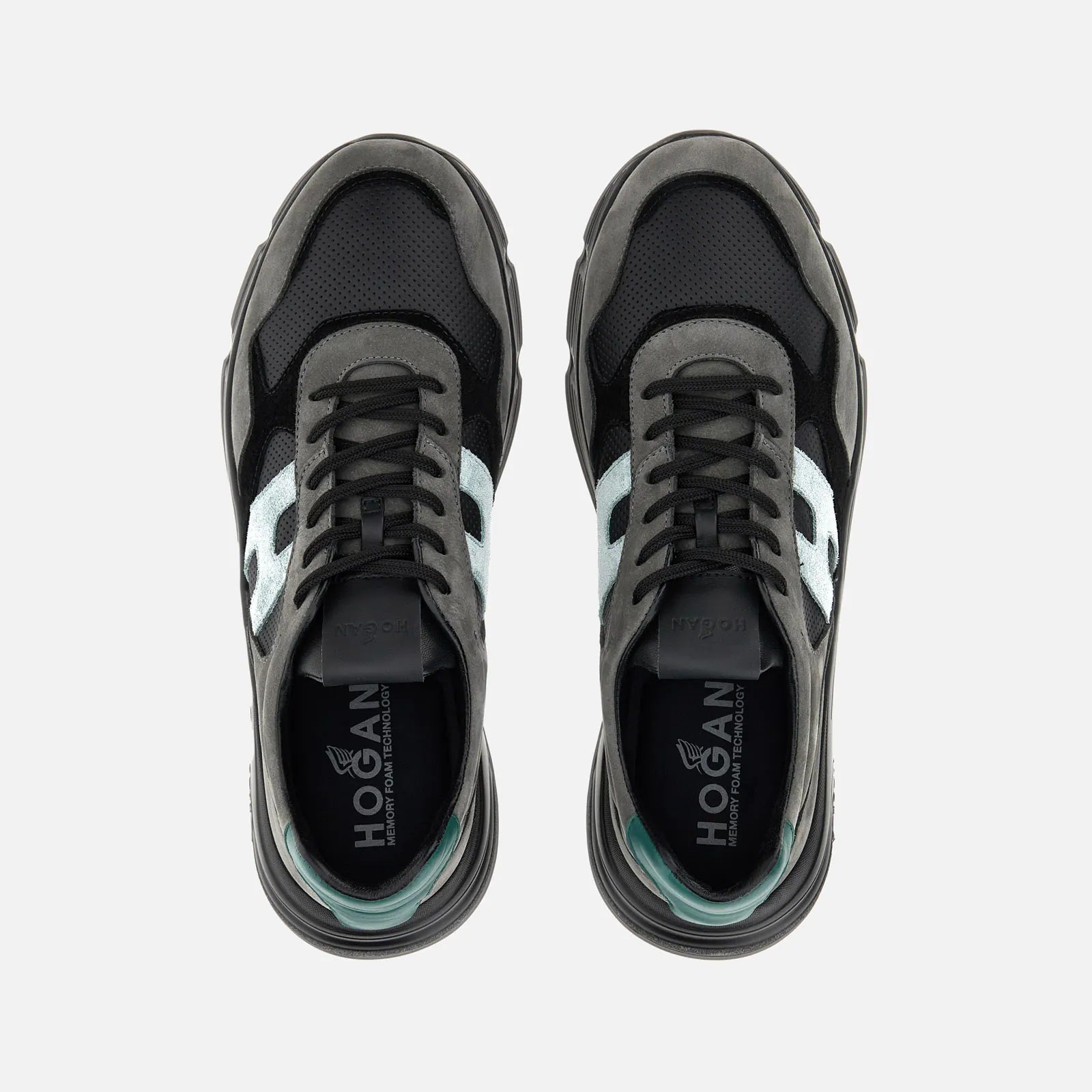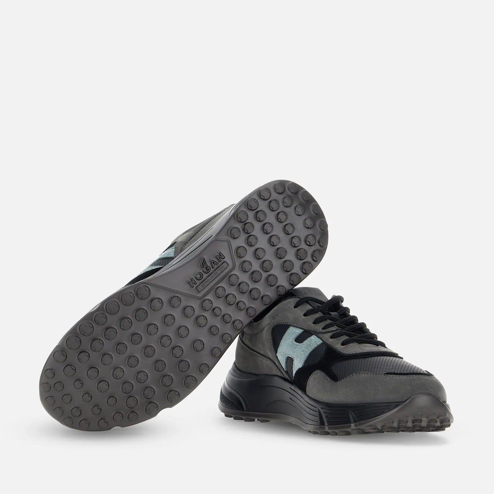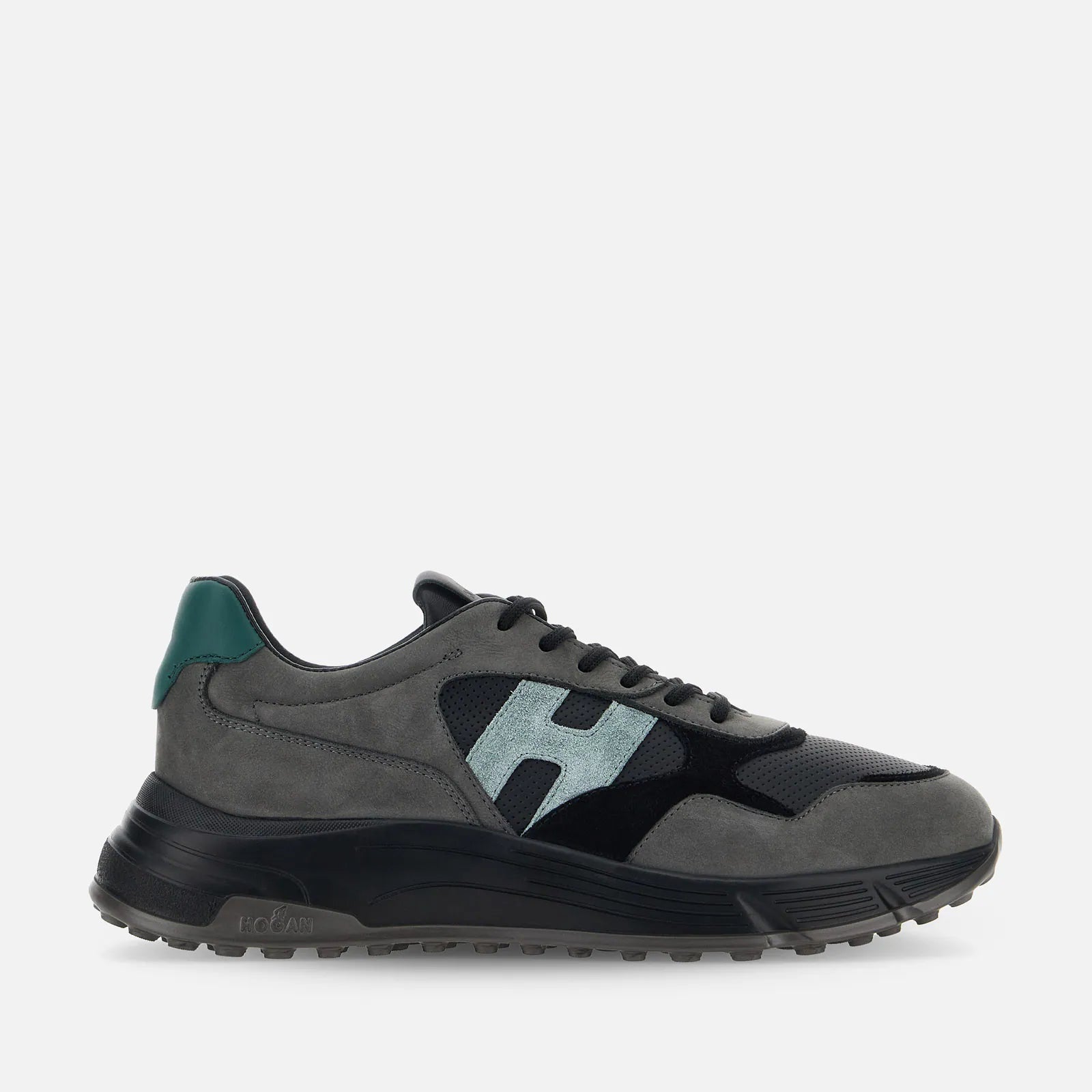 Characterized by smooth and dynamic forms, the Hogan Hyperlight sneakers combine the jogging shoe lines and urban features. The nubuck and smooth leather upper, with punched inserts and side H, recalls iconic details of the brand. An ultra dynamic style, with a memory foam insole and a lightweight outsole with spikes inspired by the historic H383 style.