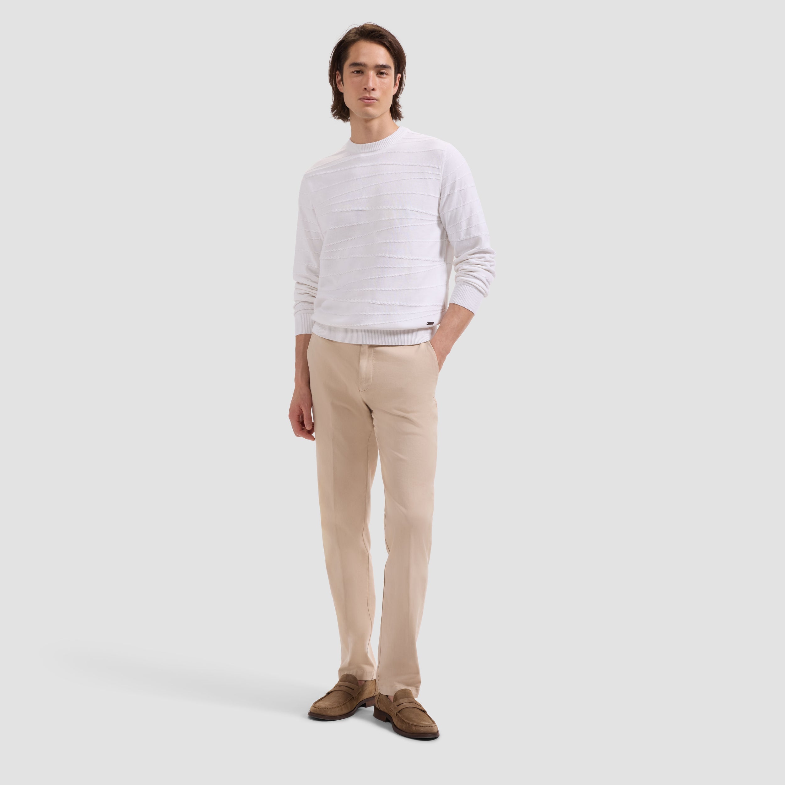 Bugatchi Chain-Link Crewneck - Chalk