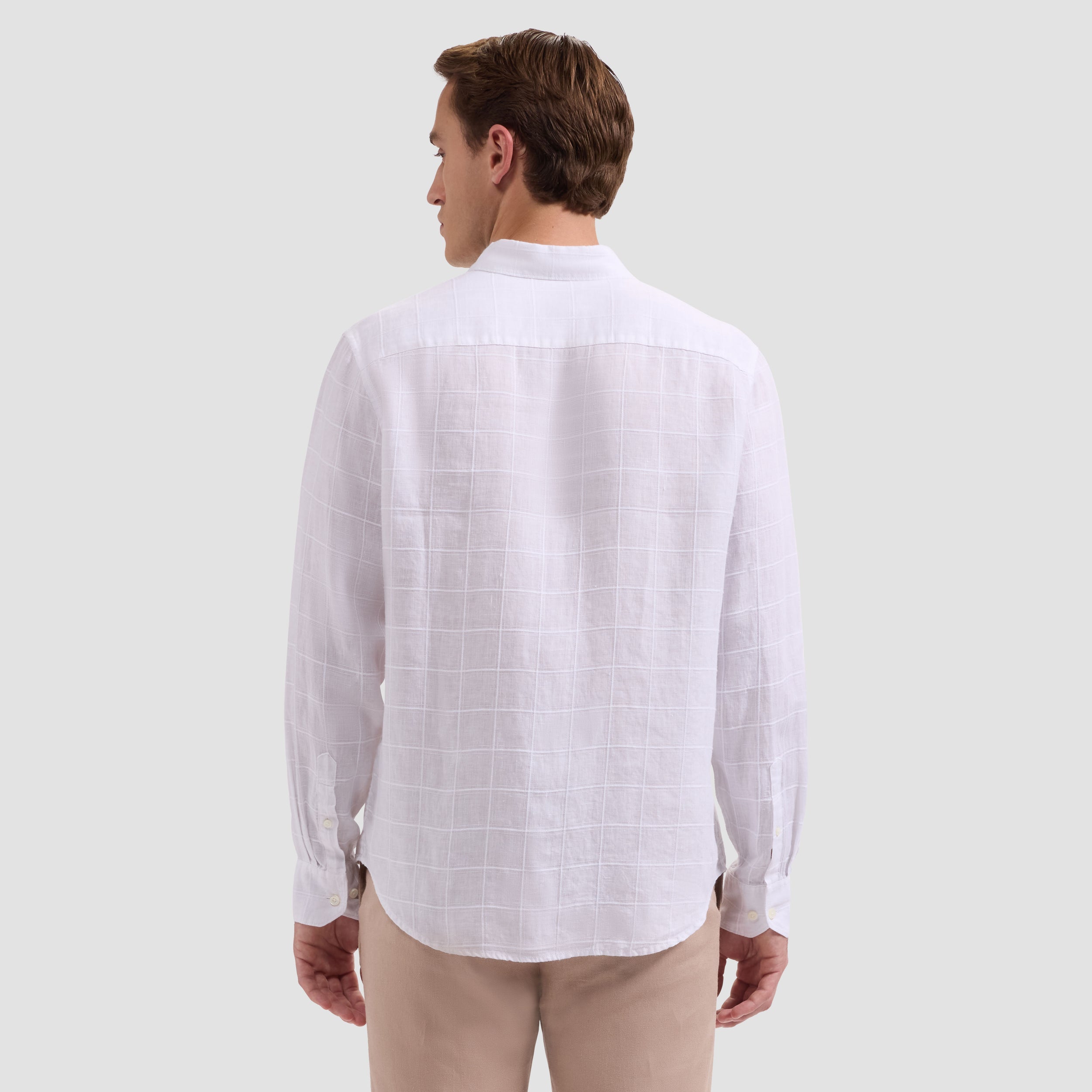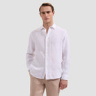 Bugatchi Julian Linen Windowpane LS Shirt - White
