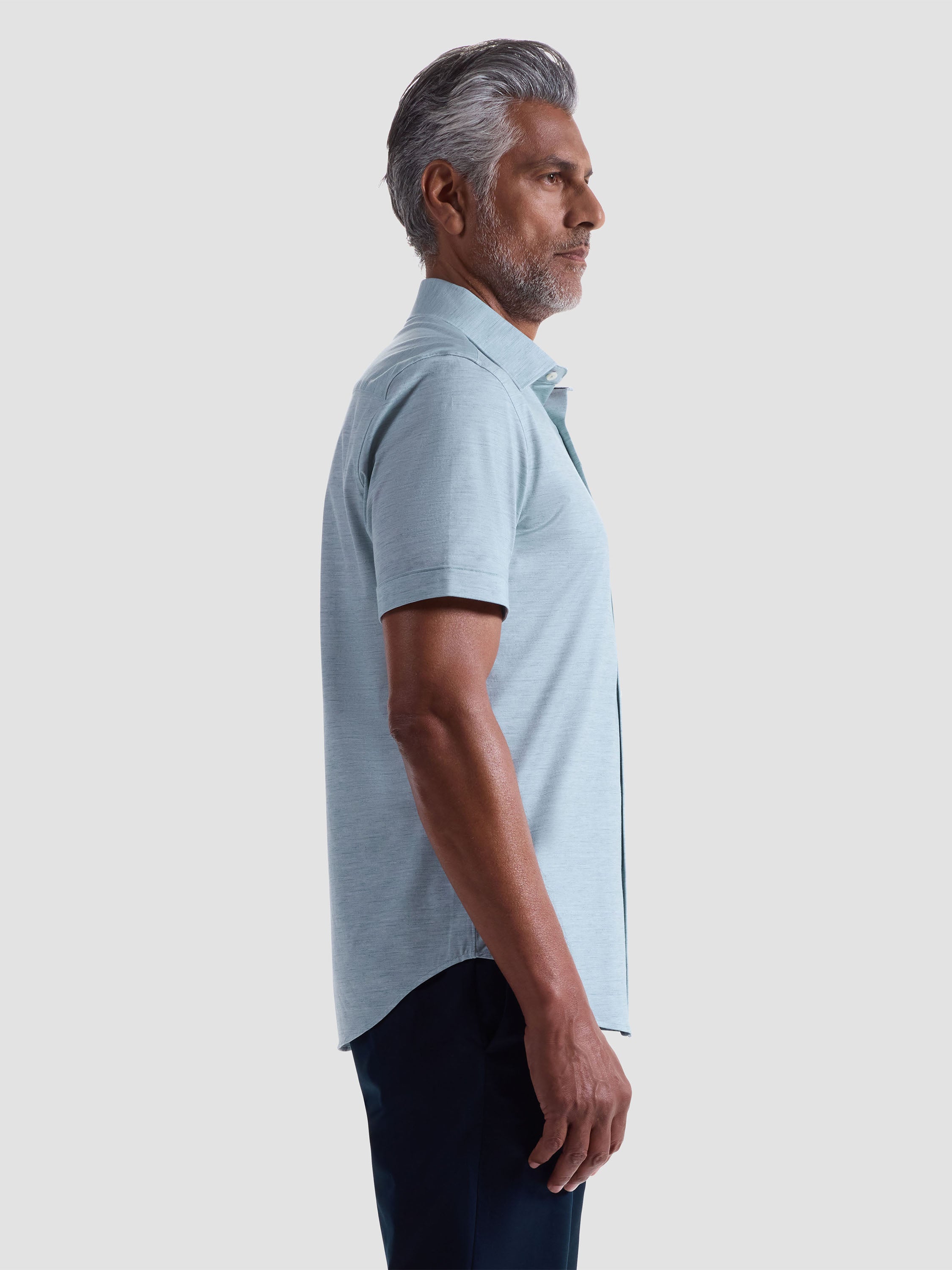 The Miles OoohCotton® short-sleeve shirt features a point collar, mother-of-pearl buttons, and a curved hem for a sleek tucked or untucked look. OoohCotton® is a performance, double-mercerized, wrinkle-resistant, breathable, and easy-care cotton blend with 8-way stretch, quick-dry, and thermal comfort properties.