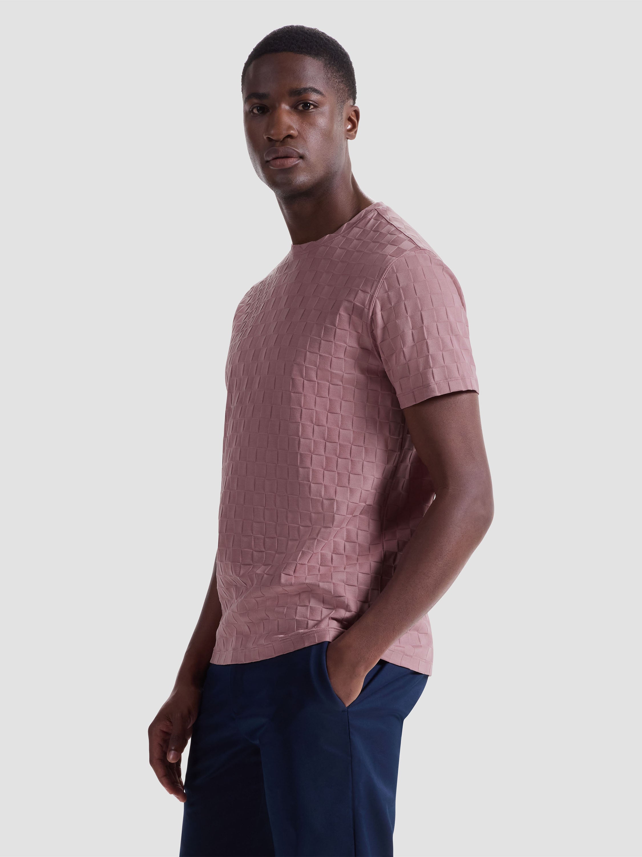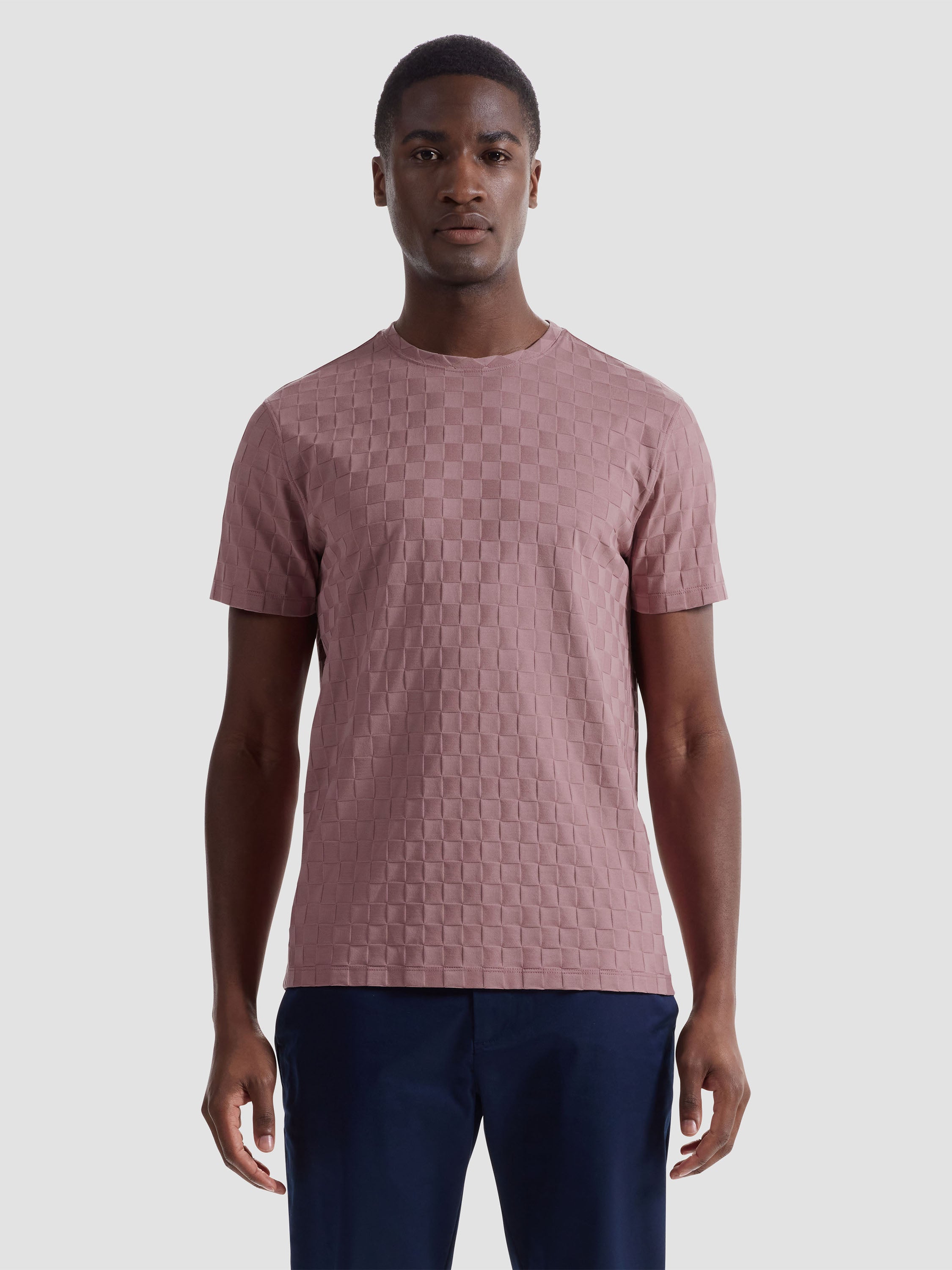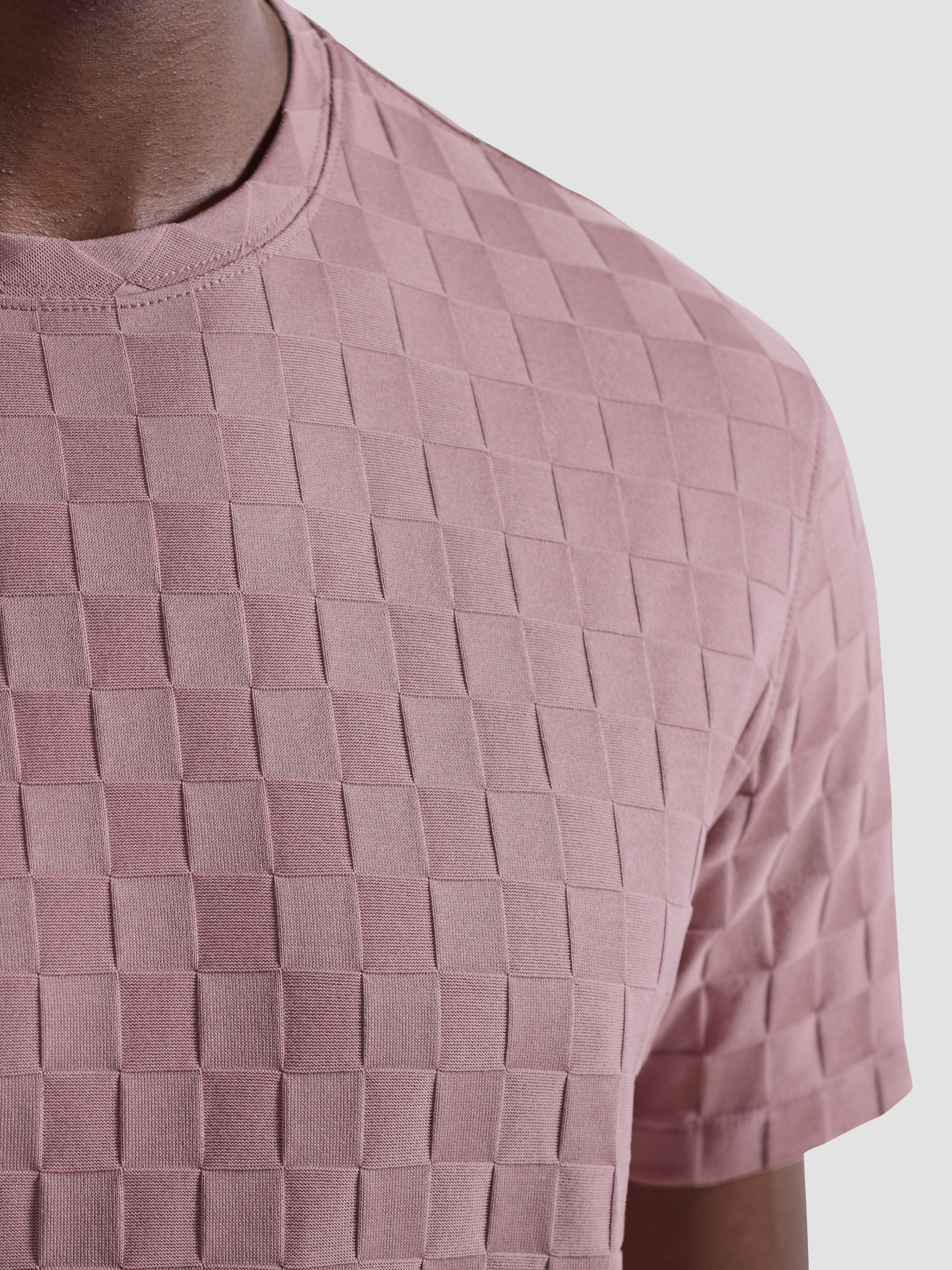 Crafted from 100% premium cotton, this short-sleeve T-shirt features an all-over tonal checkerboard knit for a refined take on casual wear. Lightweight, breathable, and ultra-soft, it's finished with a classic crewneck and clean hems, offering elevated texture in a comfortable everyday silhouette.