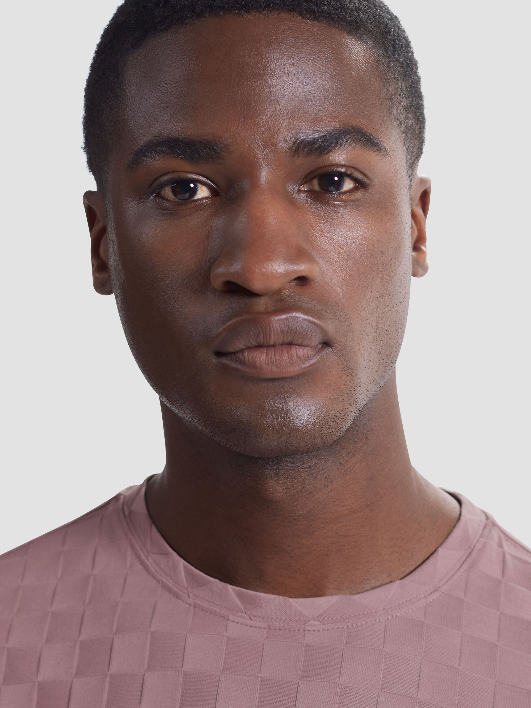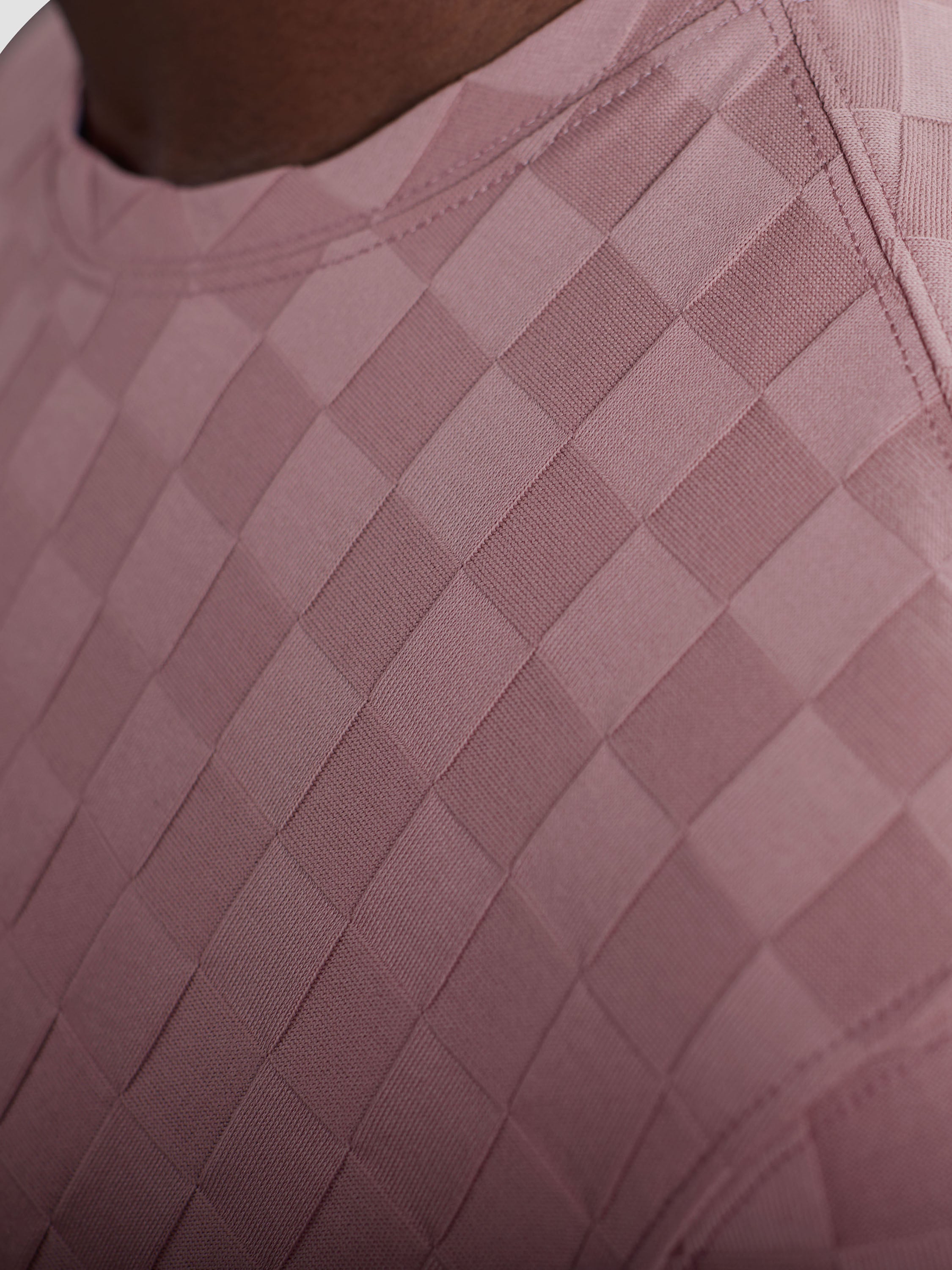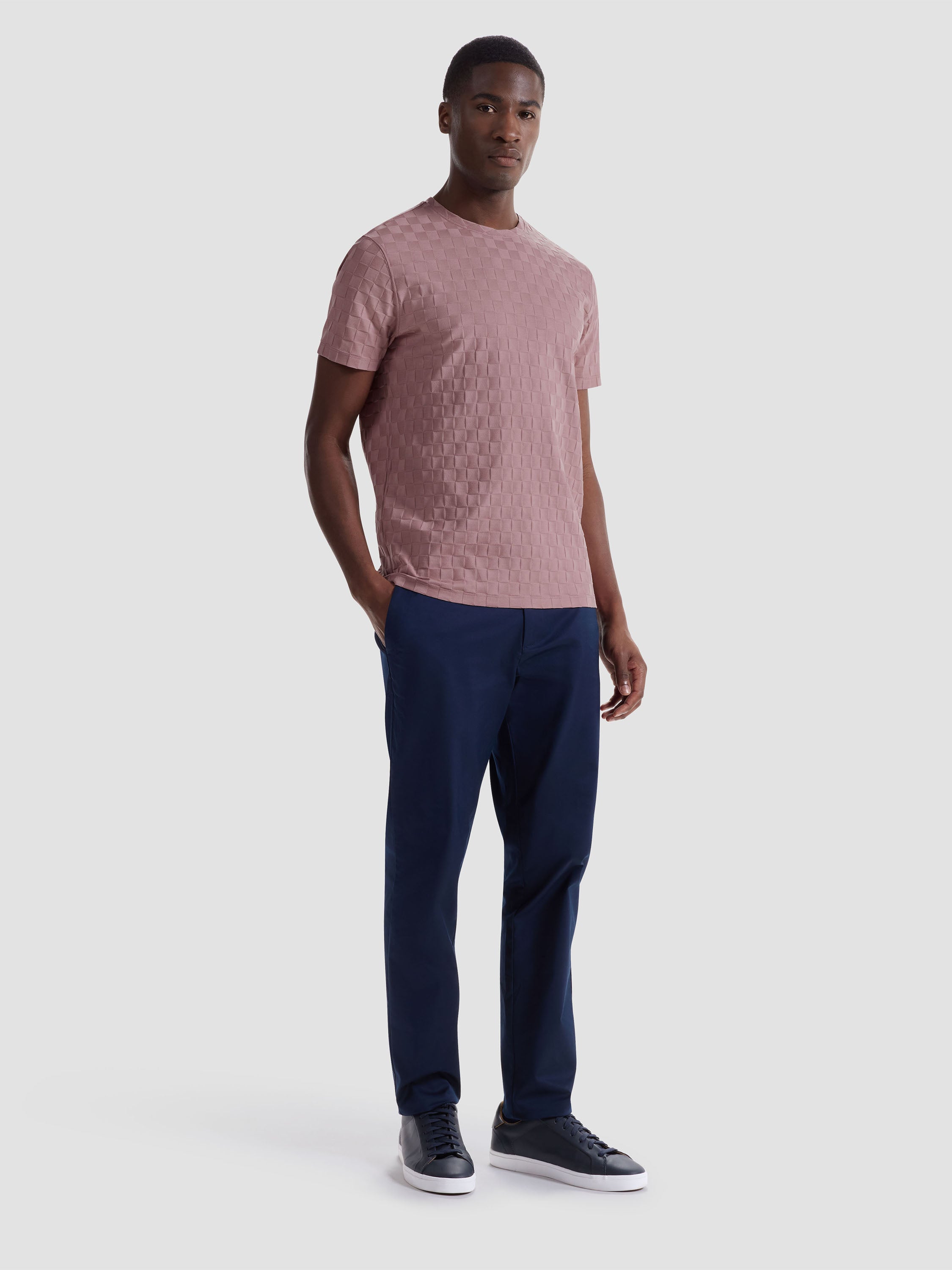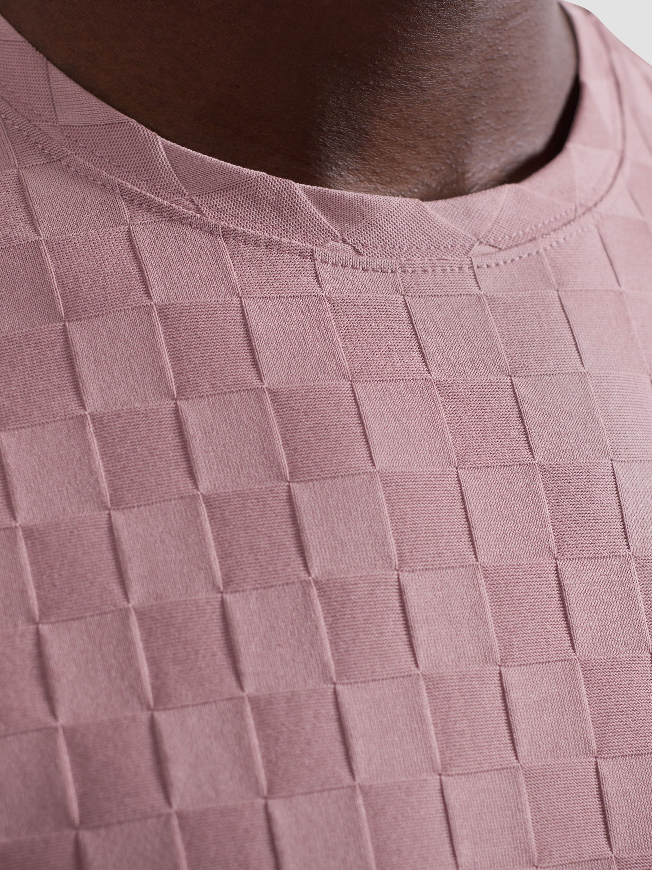 Crafted from 100% premium cotton, this short-sleeve T-shirt features an all-over tonal checkerboard knit for a refined take on casual wear. Lightweight, breathable, and ultra-soft, it's finished with a classic crewneck and clean hems, offering elevated texture in a comfortable everyday silhouette.