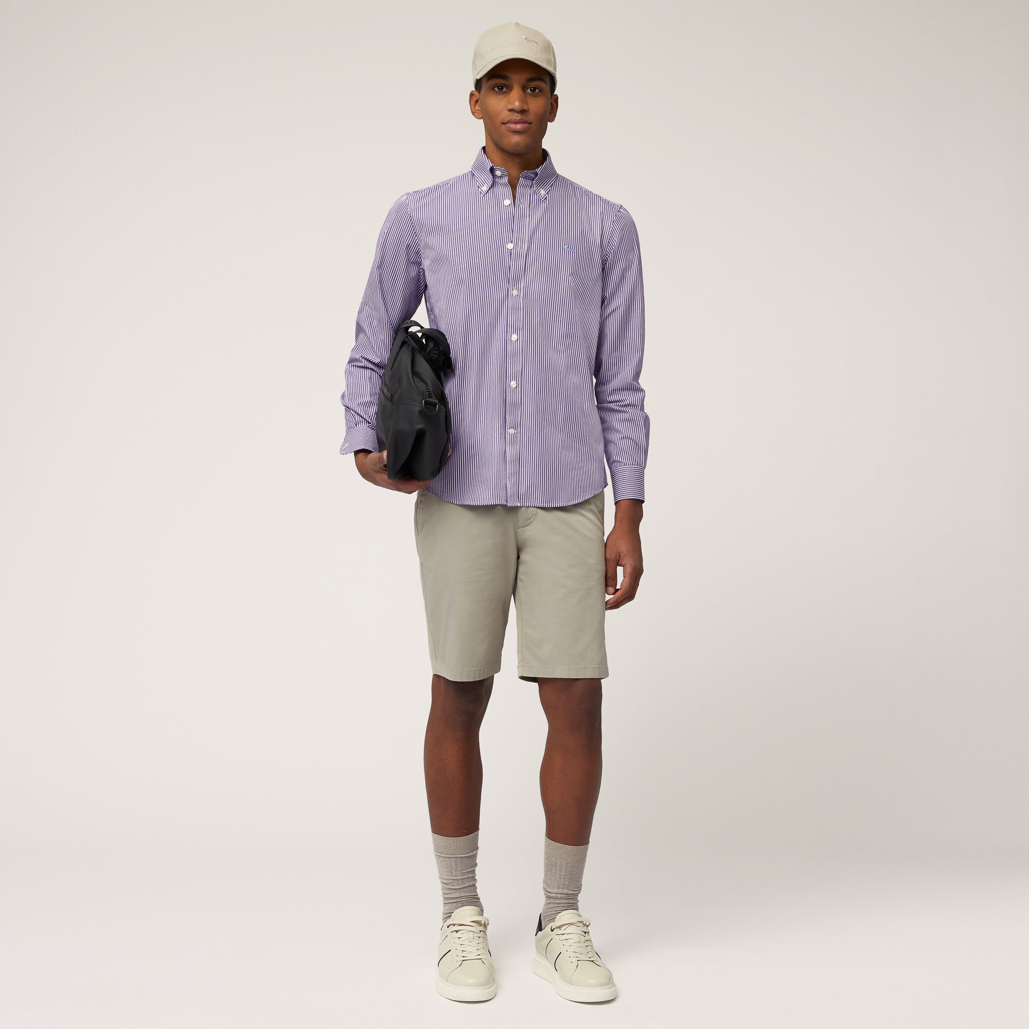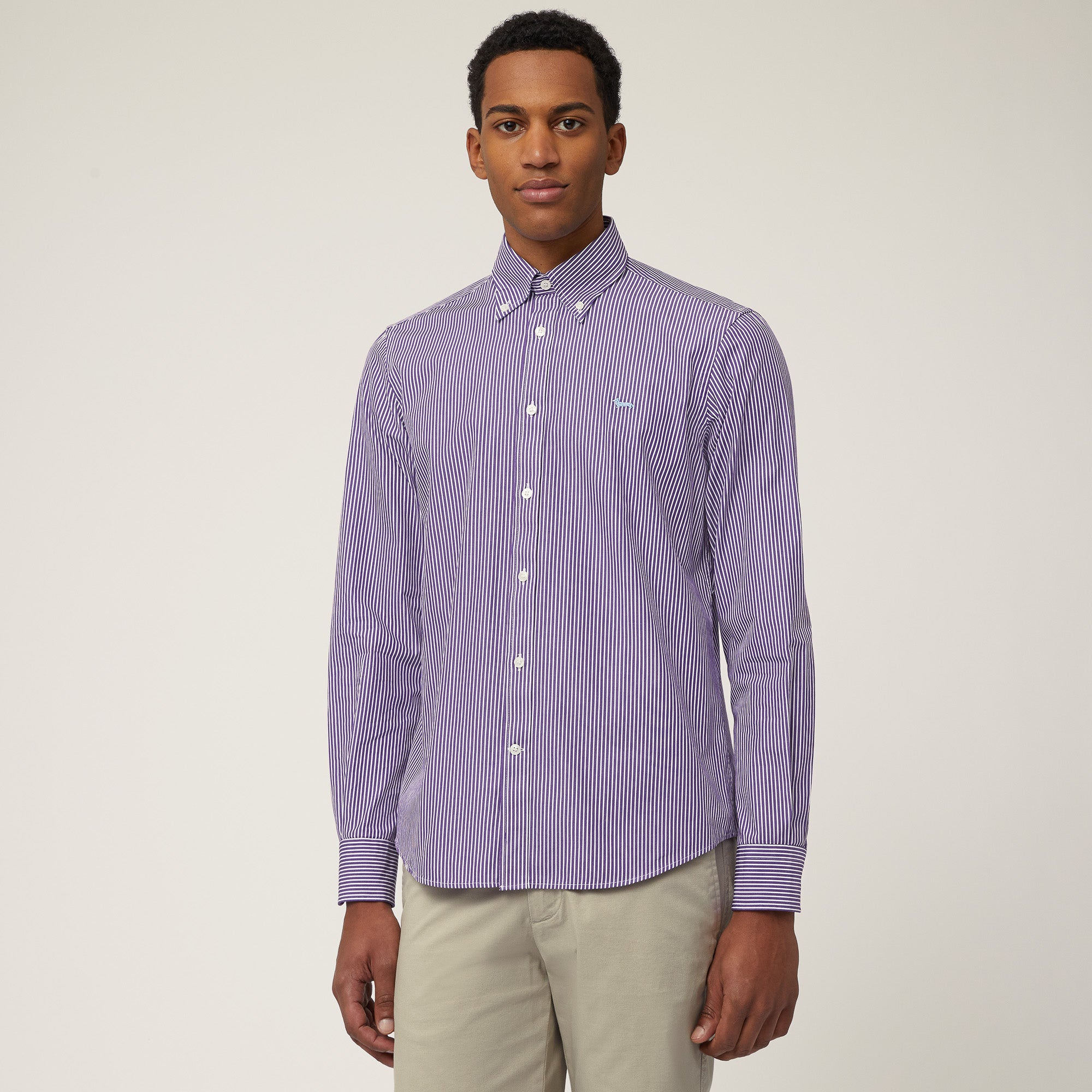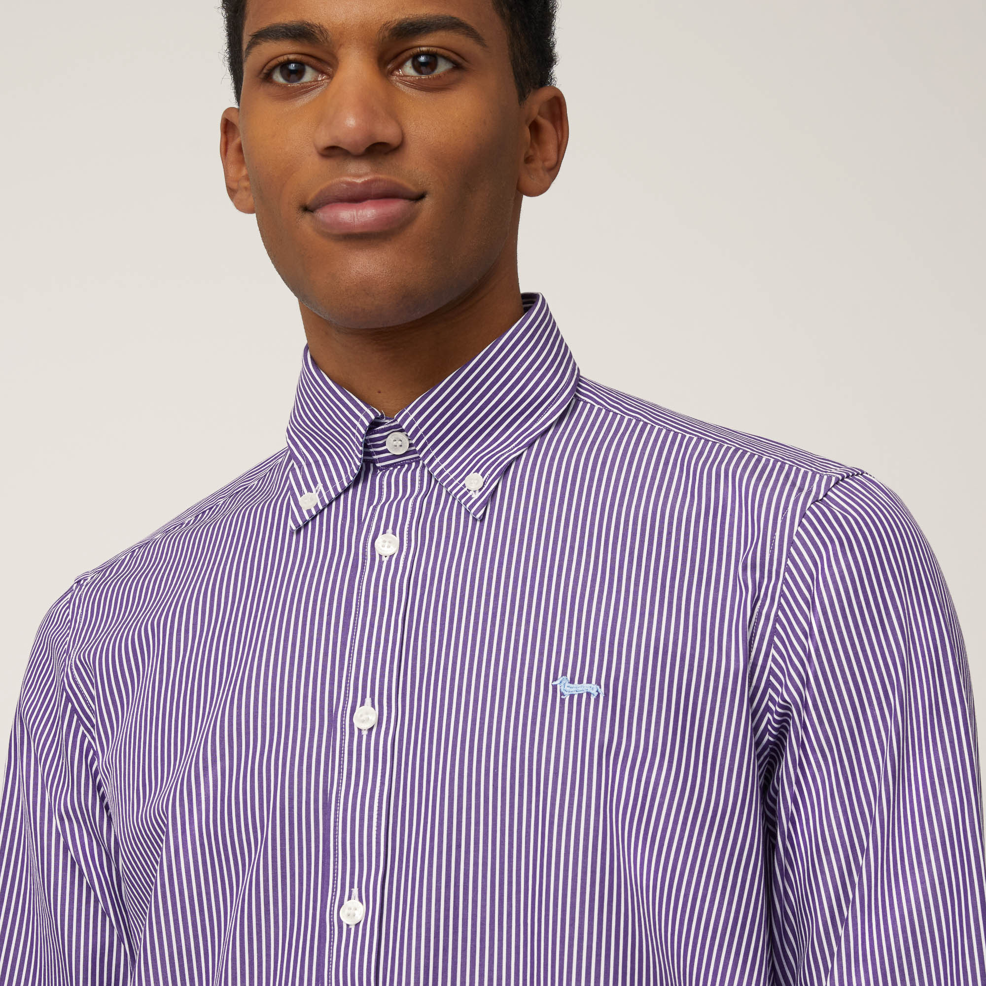Made of 100% cotton, this men's shirt by Harmont & Blaine features a dynamic all-over vertical striped pattern and a contrasting insert in the underside of the button-down collar and inside the cuffs. The style, which comes in a comfortable regular fit, is completed by a refined yoke with a pleated background on the back and the contrasting embroidery of the iconic dachshund on the chest.