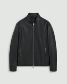 Constructed in streamlined shape with a classic collar and two-way zip closure, this polished jacket features interior and exterior pockets for added functionality. It’s crafted from premium lamb leather with a luxurious feel and seasonless look.