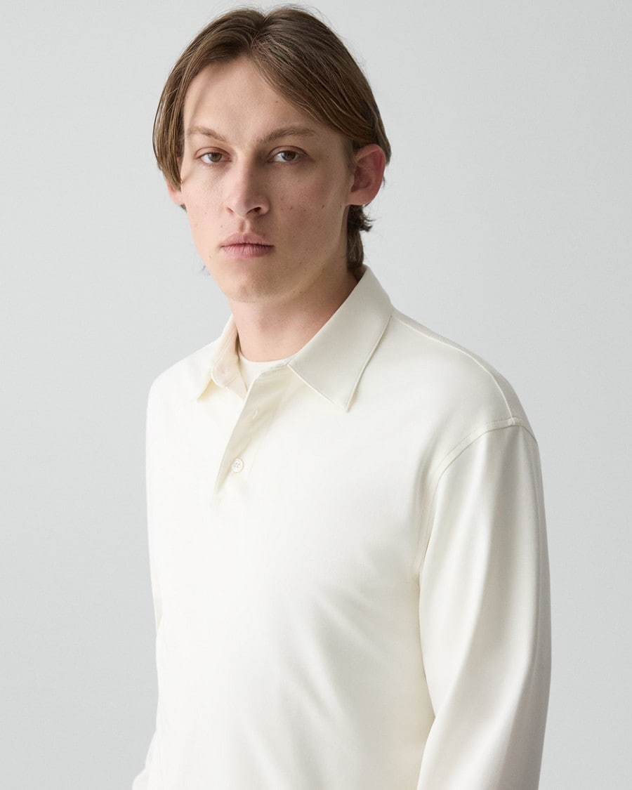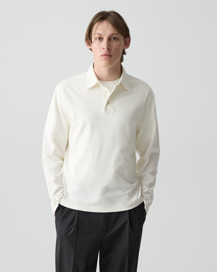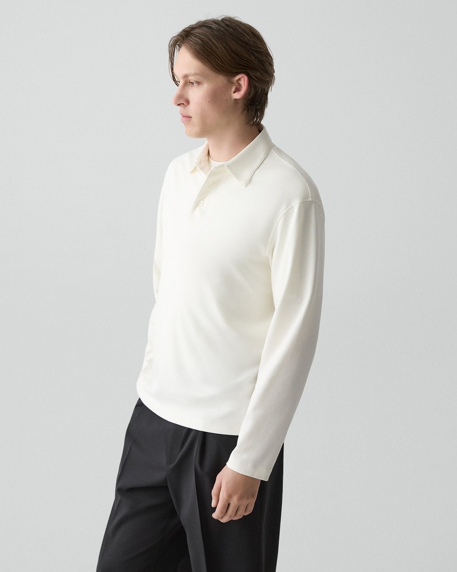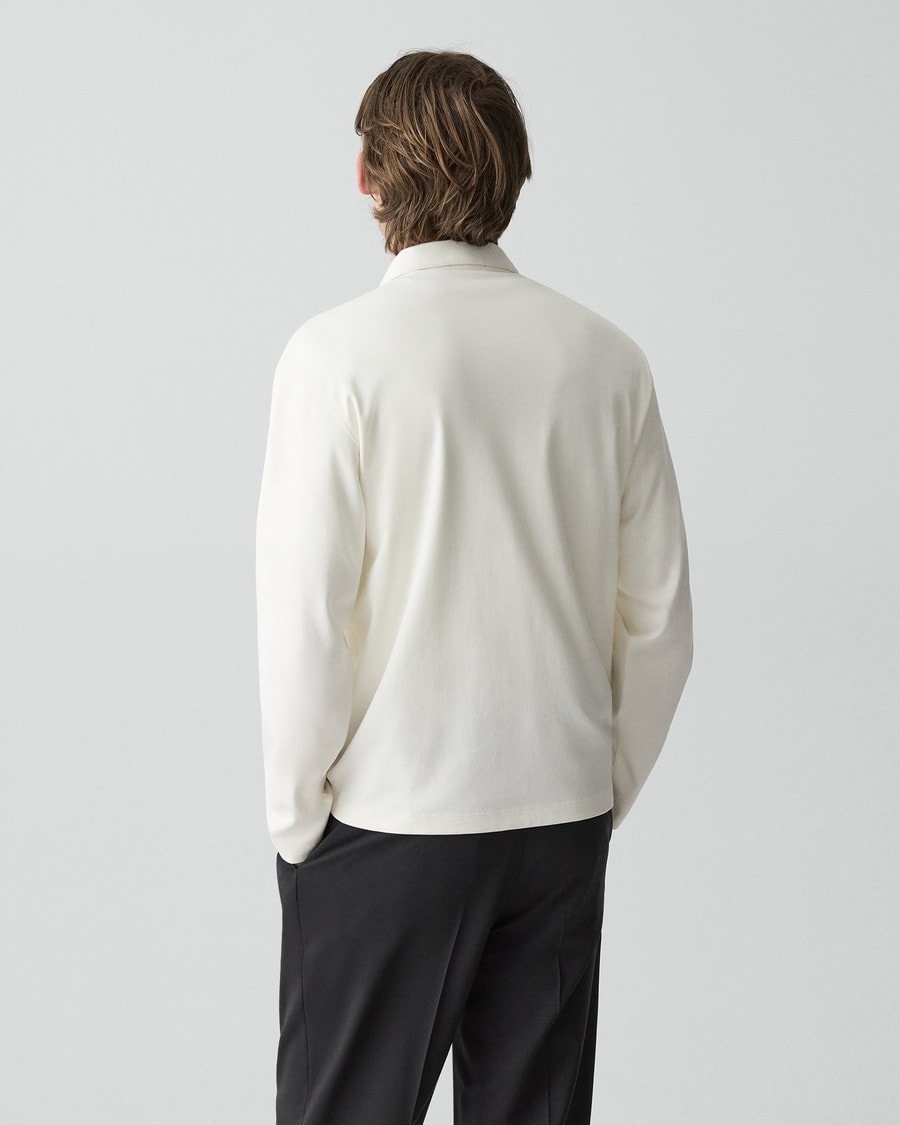 Theory Relaxed LS Polo in Cotton Jersey - White