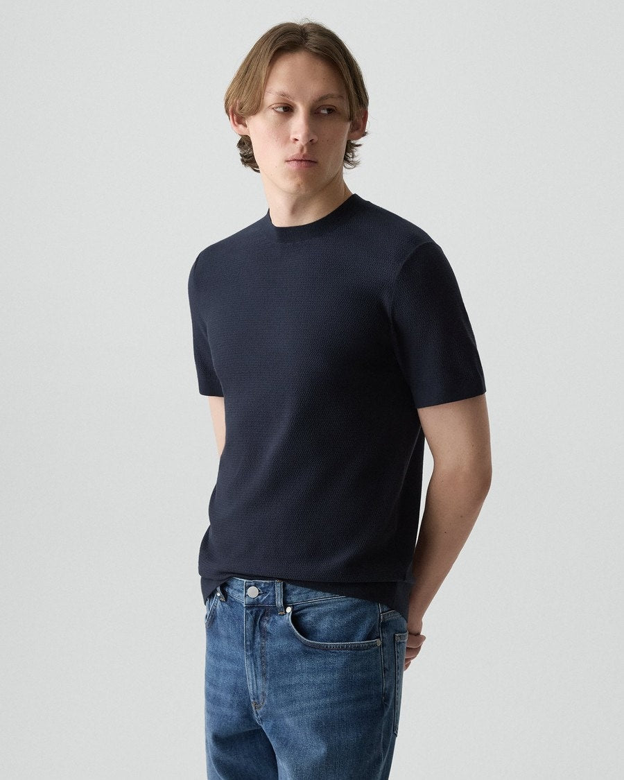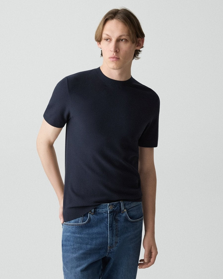 This crewneck, short-sleeve tee is crafted with a lightweight stretch knit using viscose from certified responsibly managed forests for a comfortable, technical feel and strong shape retention. Ideal for transitional weather, but equally comfortable in the summer sun, this versatile style is easy to dress up or down for any setting.