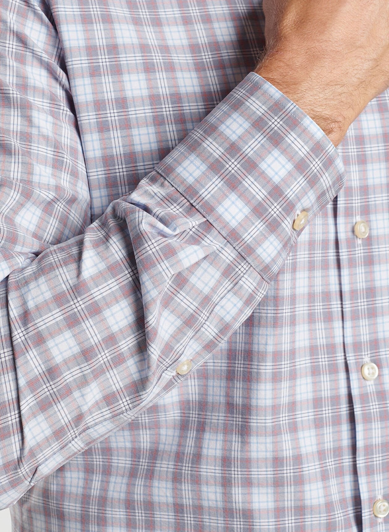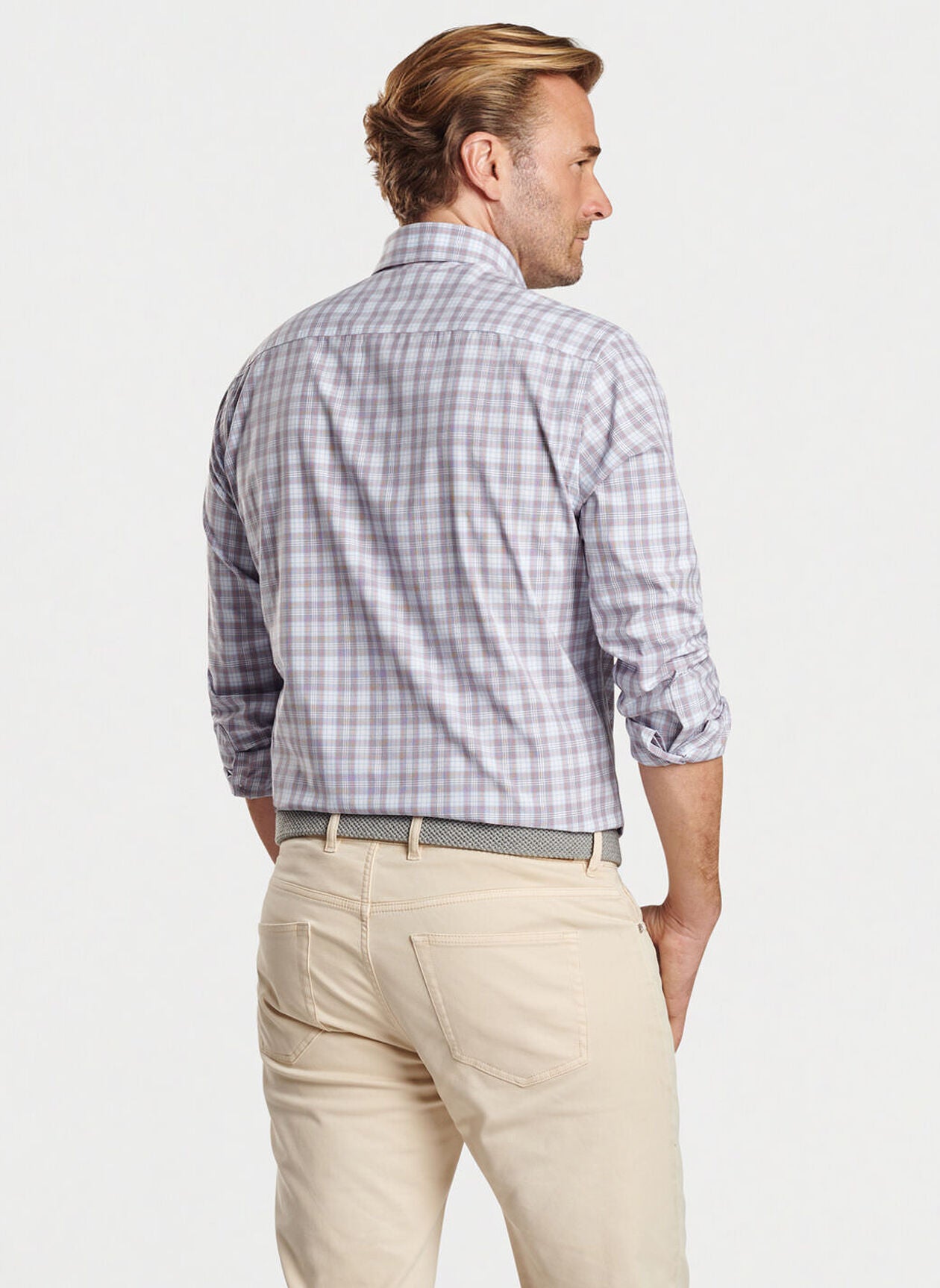 This sophisticated essential conveys the classic look of a poplin shirt in an easy-care performance fabric that offers two-way stretch, wicking and UPF 50+ sun protection. Finished with a button-down collar, French placket and double-button barrel cuffs.