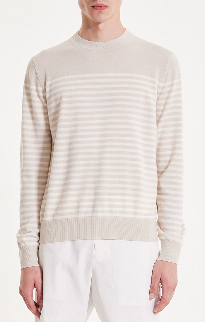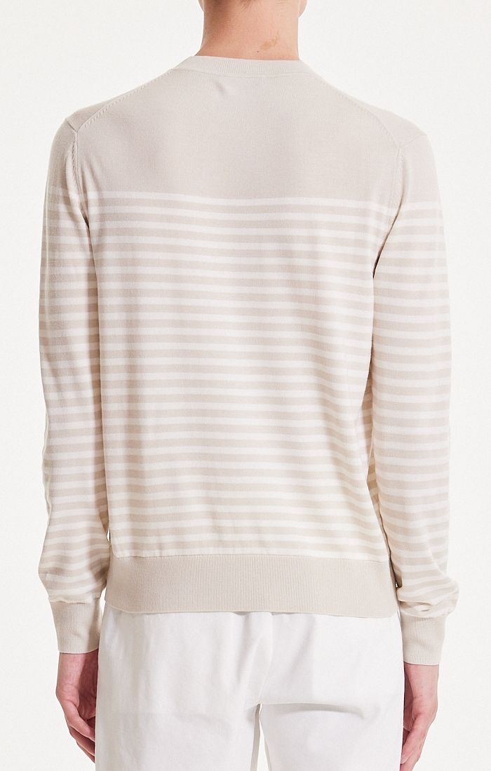 Our sweater has a crew neckline and long sleeves with ribbed cuffs. This straight-fitting sweater is knit from a striped fine-gauge merino wool using wool from certified responsibly managed farms.