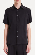 Theory Irving Short Sleeve Shirt in Fluid Twill - Black