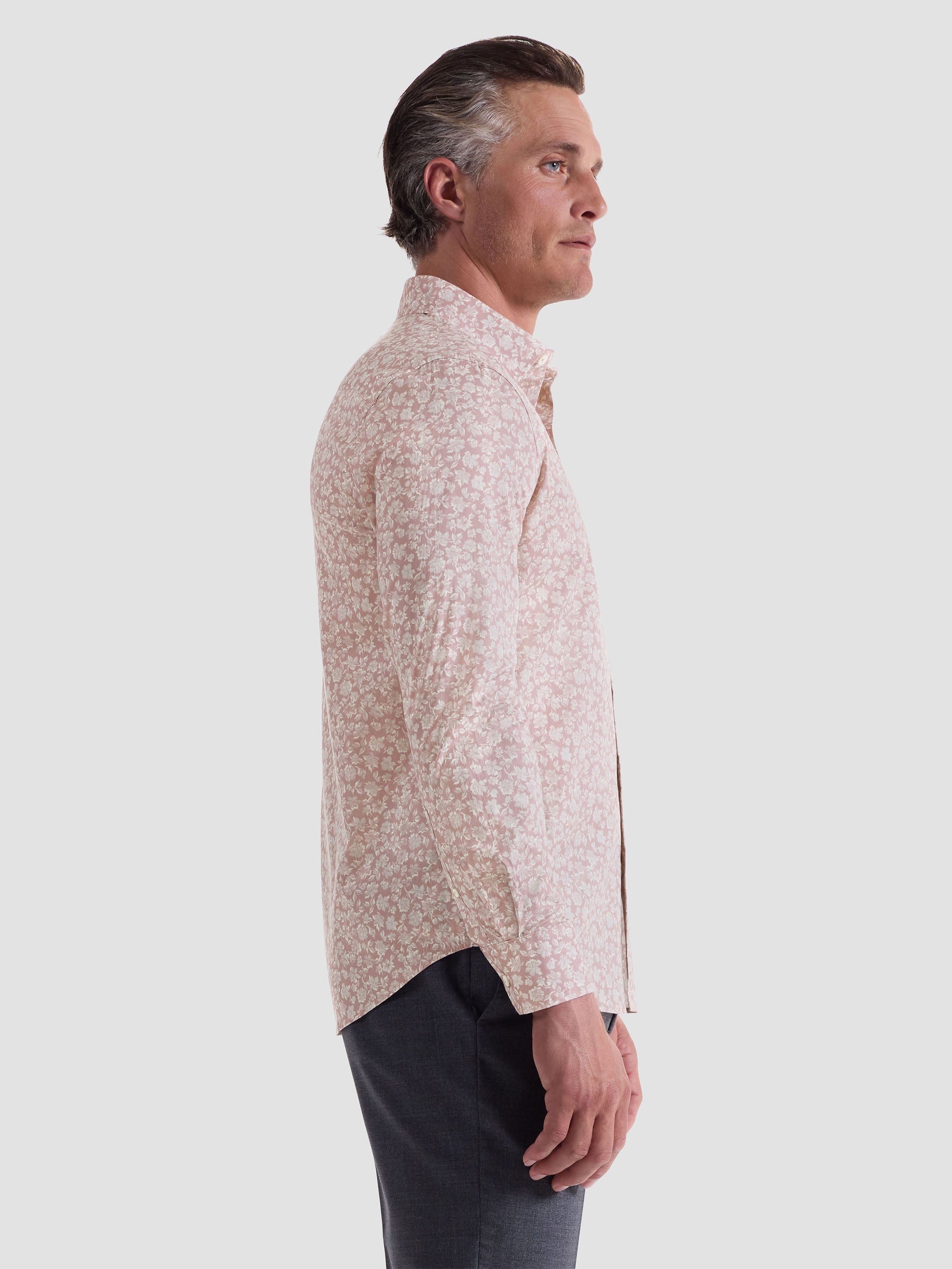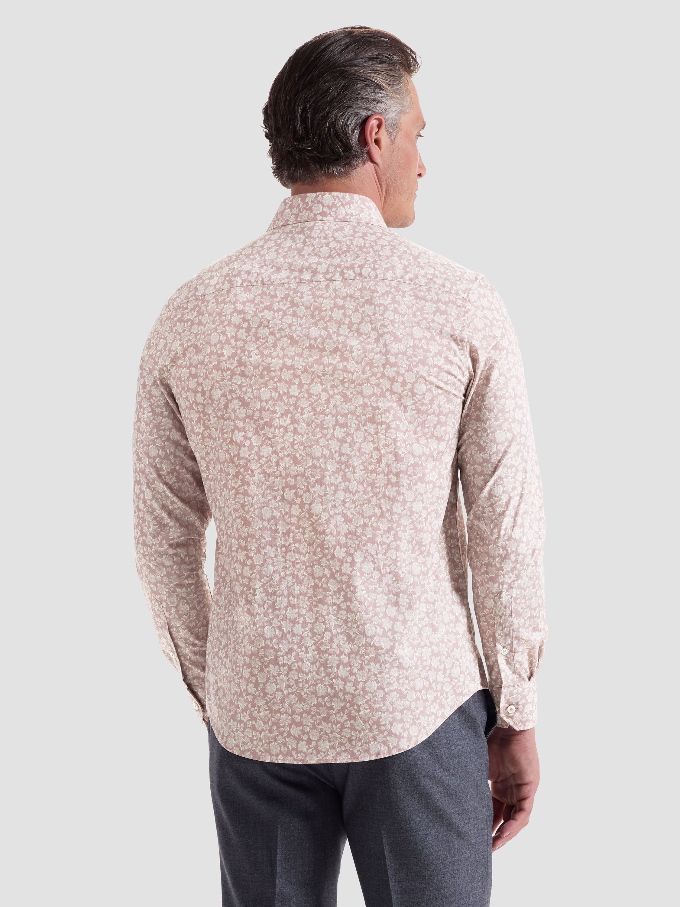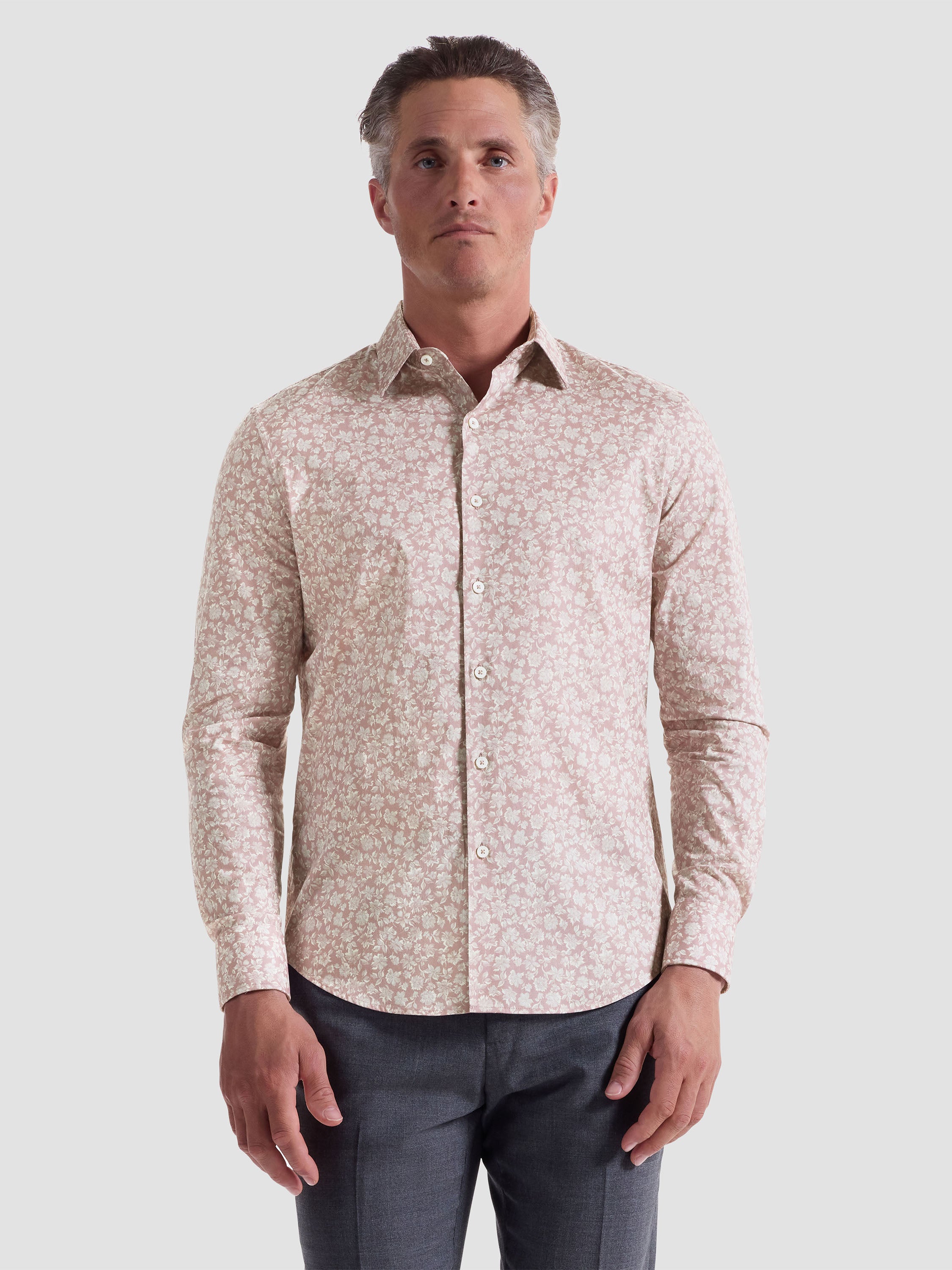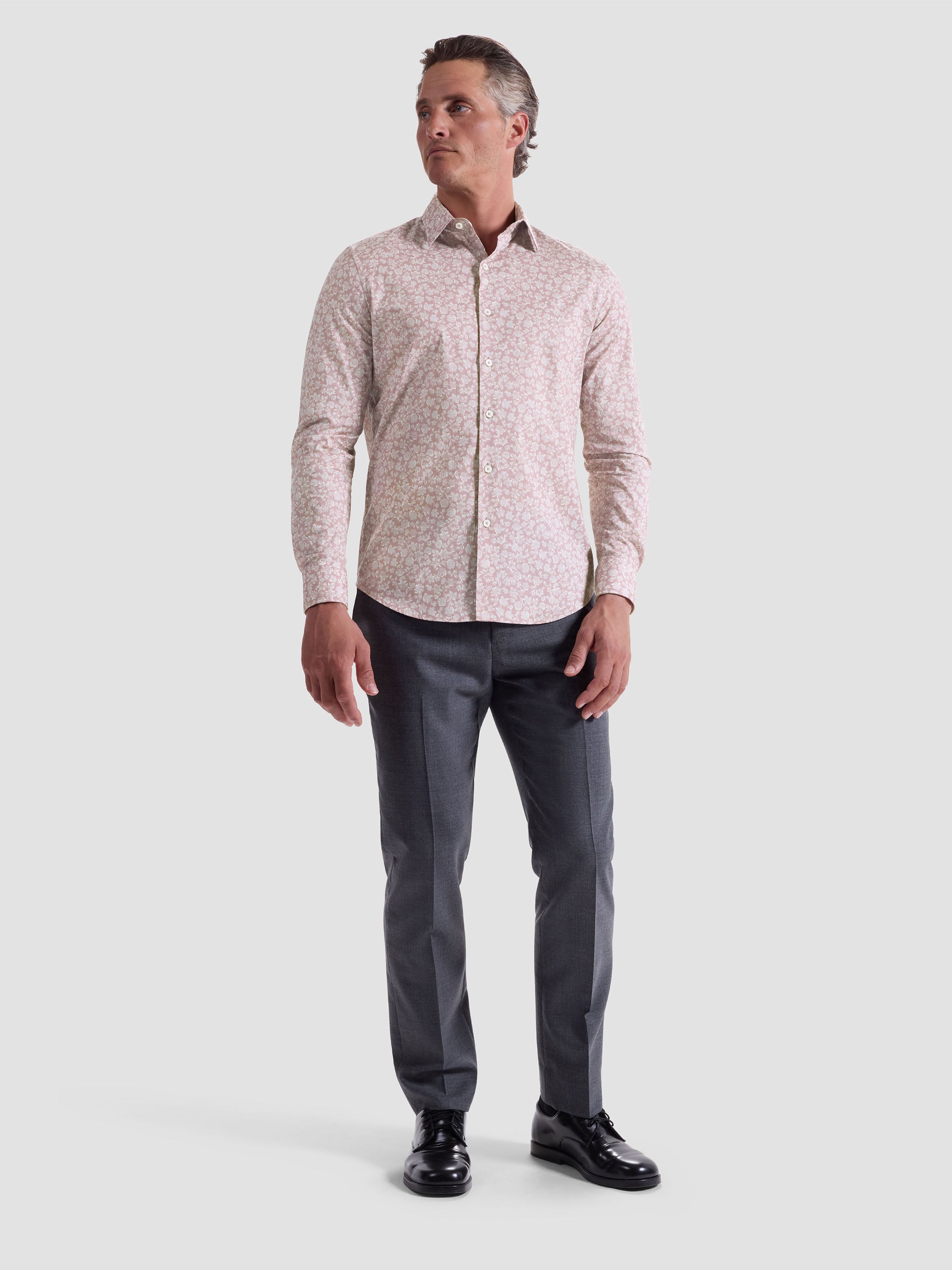 The Julian long-sleeve Comfort Stretch shirt in floral print is crafted from premium Italian cotton with a hint of stretch for all-day comfort. It features a point collar, mother-of-pearl buttons, a curved hem that looks great tucked or untucked, and adjustable notched cuffs that also convert for cufflinks. A refined, all-occasion shirt.