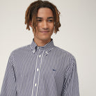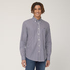 Harmont & Blaine reinterprets the men's shirt, a must-have garment par excellence, in an eclectic two-tone vertical striped version. The style comes in a versatile and comfortable regular fit and features a rounded hem, making it ideal for either wearing outside pants for a more casual look or tucking inside them for a slightly more formal look. The button-down collar is a practical feature, while the iconic embroidered dachshund on the chest provides that brand-signature finishing touch.